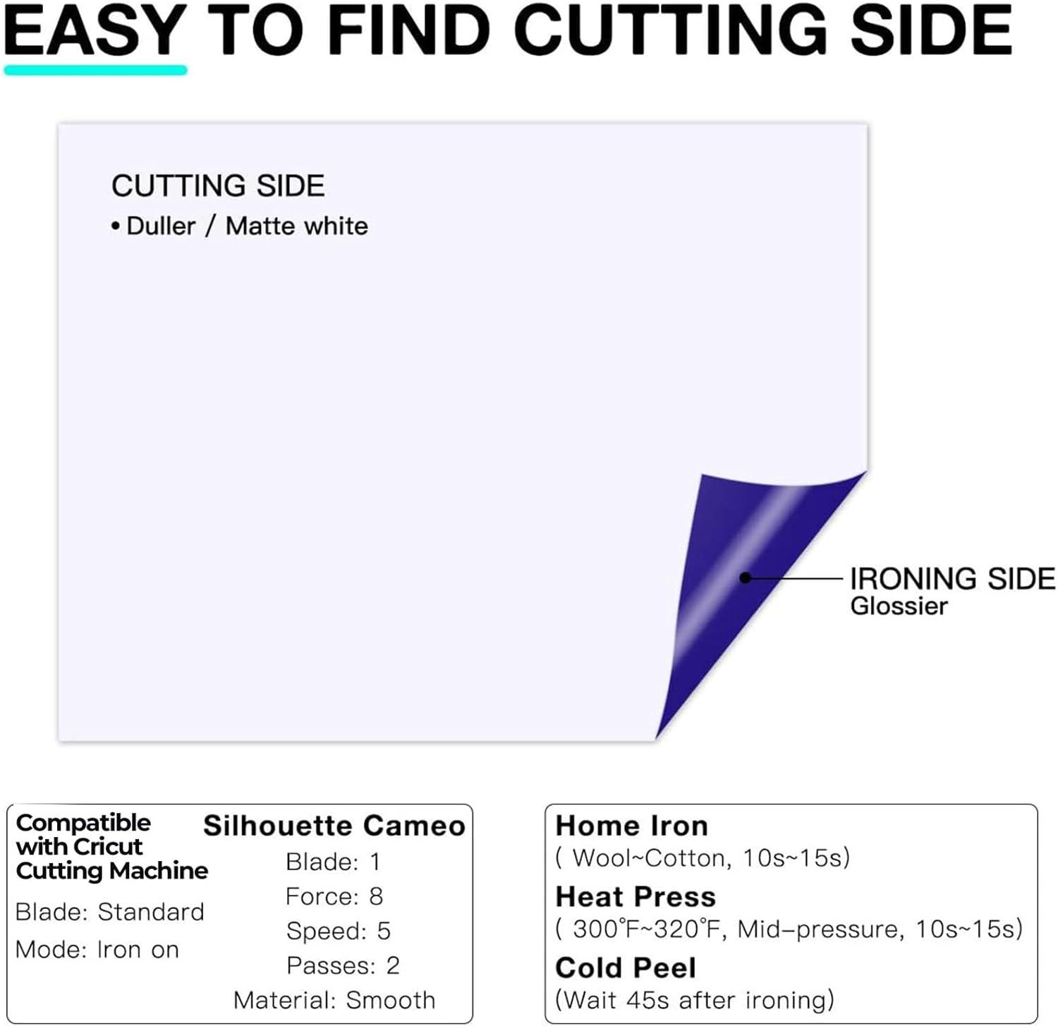 【EASY TO CUT & WEED & TRANSFER】The PU black HTV heat transfer vinyl is smooth with a good cutting application characteristics, so you can cut and weed easily through the designs just right.The black HTV vinyl sheet is sensitive to temperature and pressure, which can be heat transferred on any t-shirt easily. Our black HTV is COLD peel.