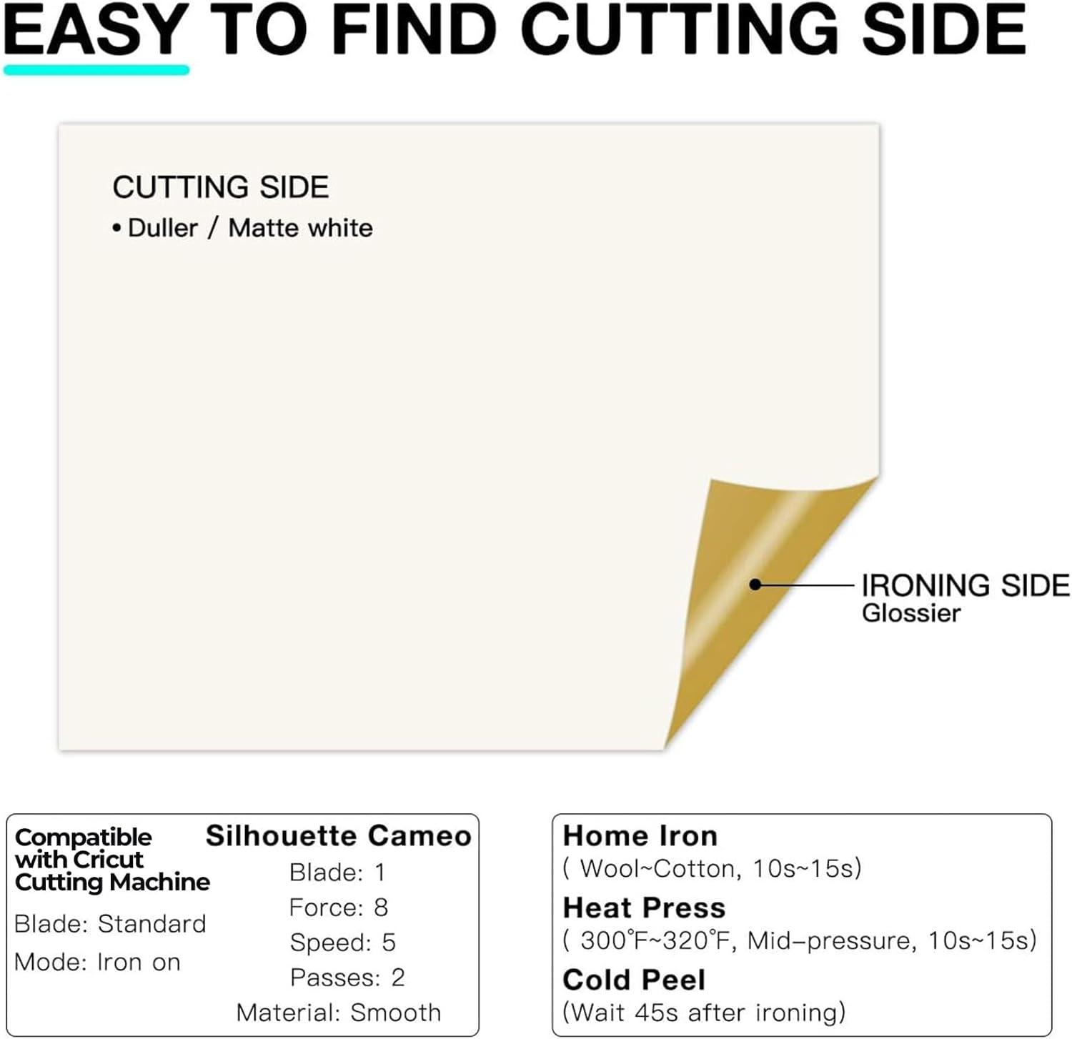 【EASY TO CUT & WEED & TRANSFER】The PU black HTV heat transfer vinyl is smooth with a good cutting application characteristics, so you can cut and weed easily through the designs just right.The black HTV vinyl sheet is sensitive to temperature and pressure, which can be heat transferred on any t-shirt easily. Our black HTV is COLD peel.