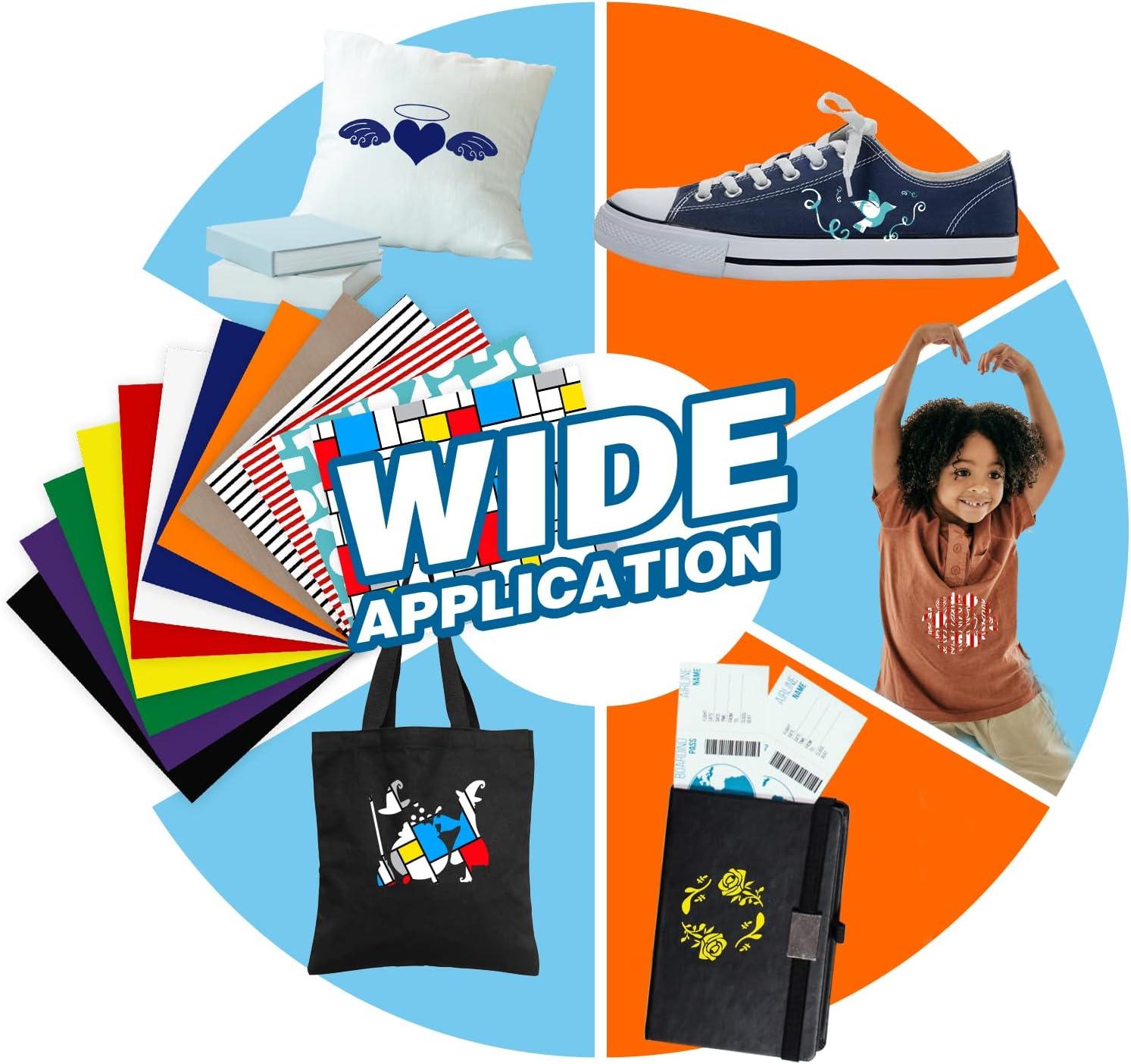 【ECO &USING WIDELY】Your t-shirt, bag, sportswear, aprons, hat and pillow, which used our iron on vinyl, make you stand out from the crowd. our black htv vinyl bundle is suitable for athletic mesh fabrics, Cotton, polyester and cotton blend, leather, lycra/spandex, textiles etc.Our materials are SGS certified eco-friendly and are safe to wear.