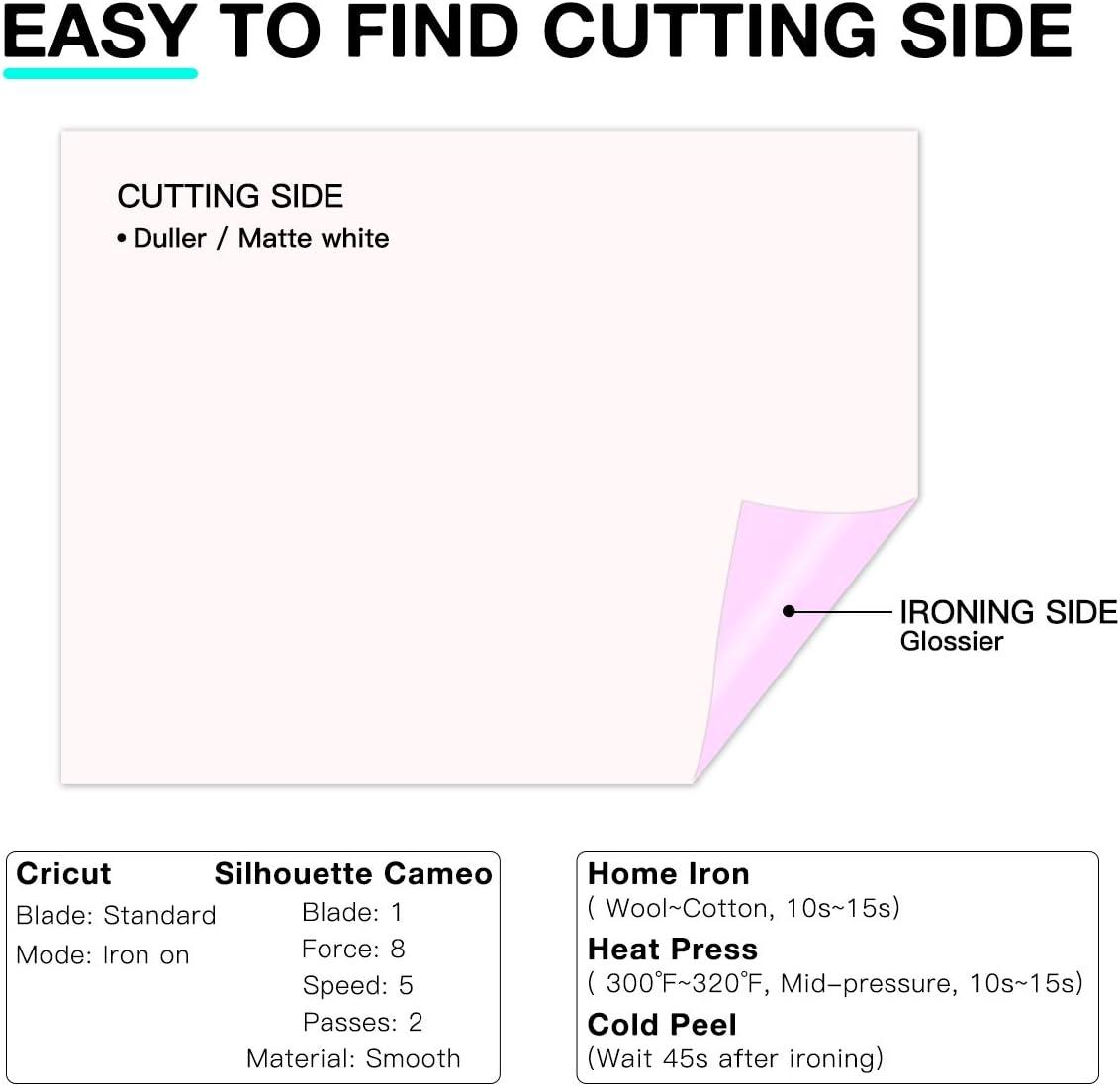 【PREMIUM MATTE MATERIAL】Our premium PU material black iron on vinyl measure 12″ x 10″ are easy and convenient to cut into different size of art designs or logos or letters. Our black heat transfer vinyl are compatible for use with Cricut Expression, Explore Air 1 & 2, and Silhouette Cameo machines