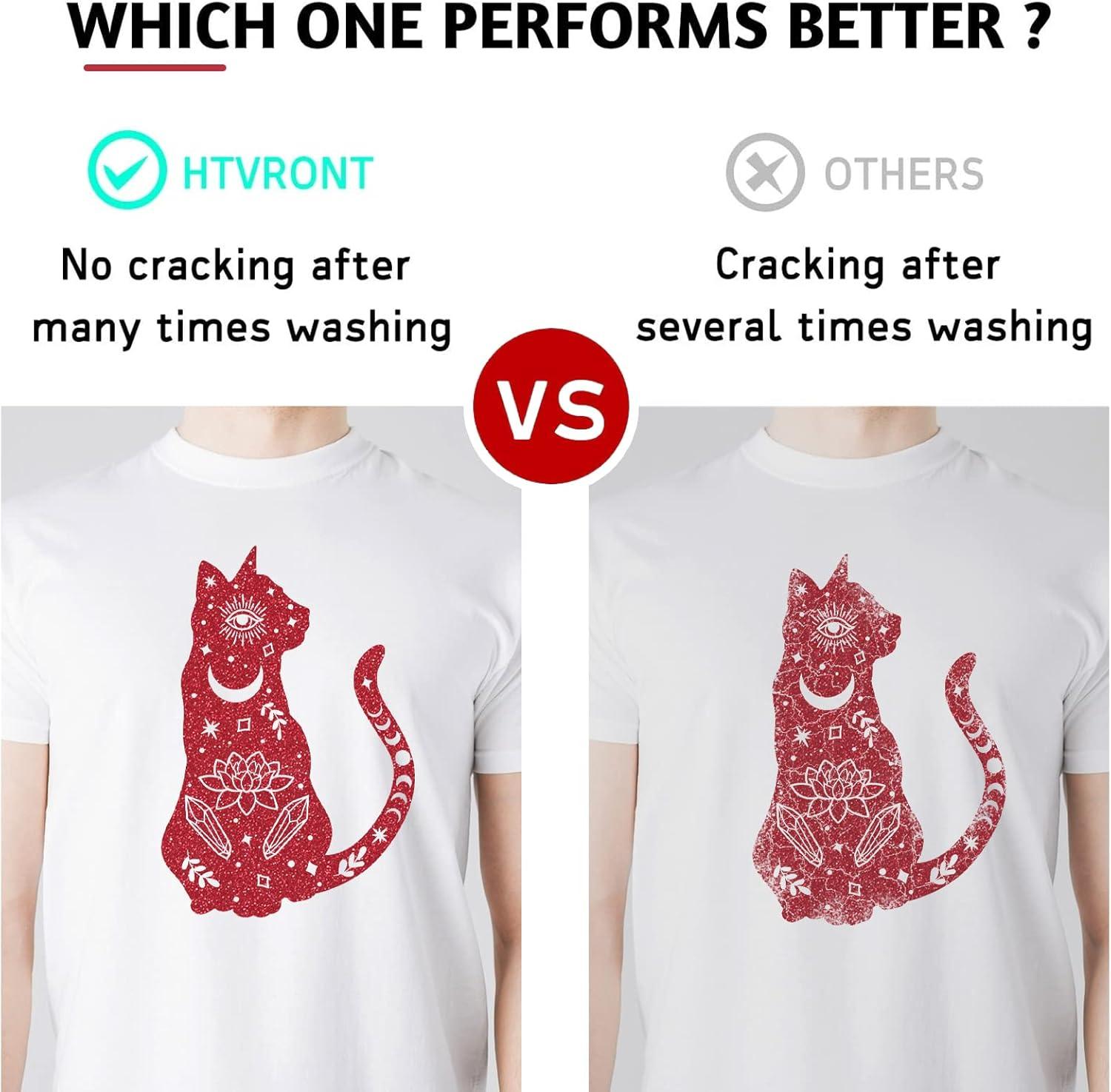 【GREAT STICKINESS & MACHINE WASHABLE】Unlike other black HTV vinyl with fading, peeling and crack.Our black htv vinyl sheets is pretty sticky, they adhere to the fabric seamlessly and has held up well in the wash.Your designs will keep the same color even after repeated washing cycles.