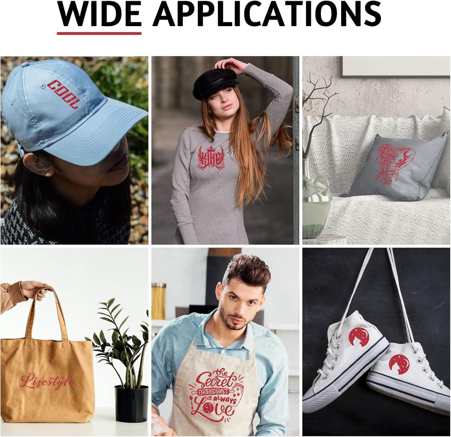 【ECO &USING WIDELY】Your t-shirt, bag, sportswear, aprons, hat and pillow, which used our iron on vinyl, make you stand out from the crowd. our black htv vinyl bundle is suitable for athletic mesh fabrics, Cotton, polyester and cotton blend, leather, lycra/spandex, textiles etc.Our materials are SGS certified eco-friendly and are safe to wear.