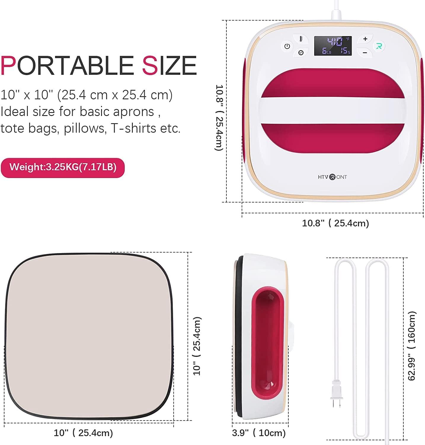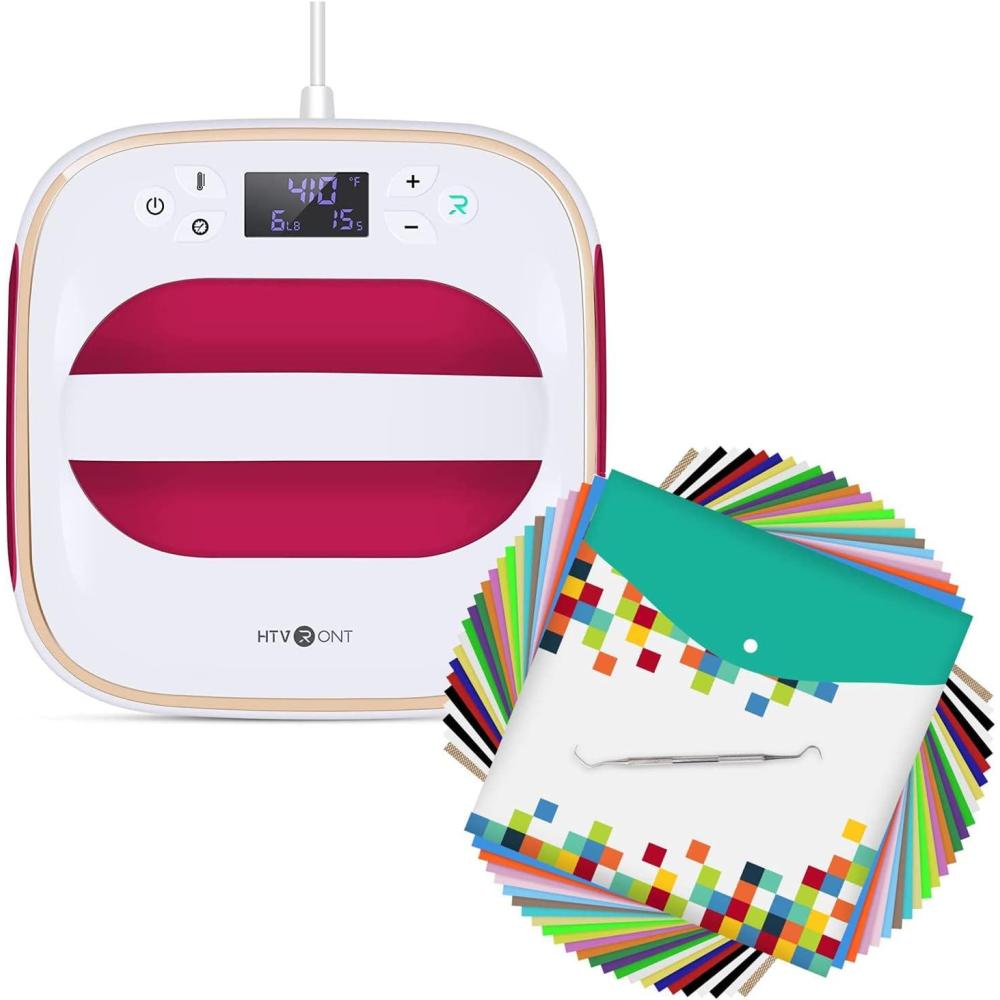 【The perfect combination】HTVRONT portable 10″X10″ heat press machine and HTVRONT 24 pack 12″ x 12″ heat transfer vinyl bundle.