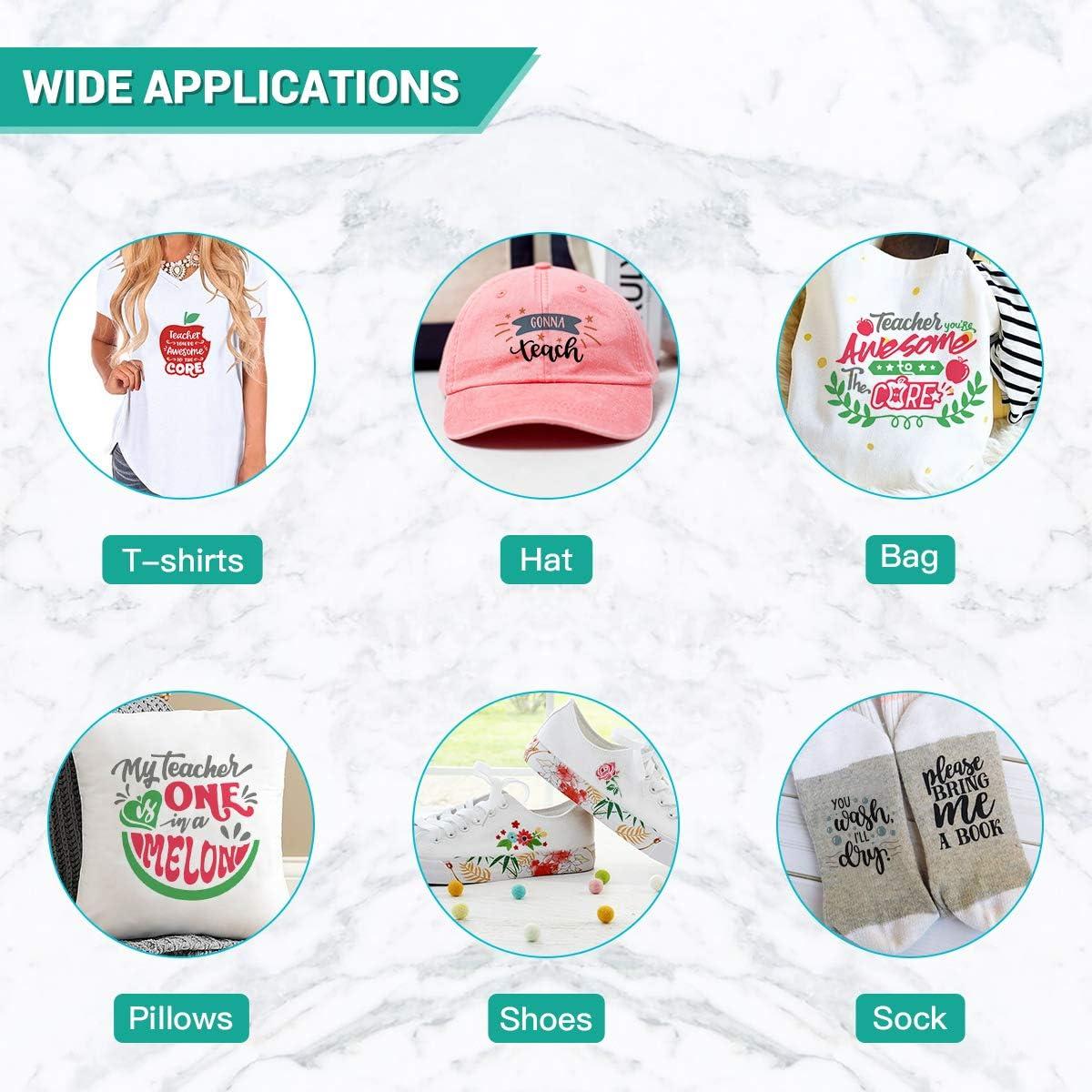 【EASY TO CUT & WEED & TRANSFER】The PU HTV heat transfer vinyl bundle is thin and smooth with a good cutting application characteristics, so you can cut and weed easily through the designs just right.The PU iron on vinyl is sensitive to temperature and pressure, which can be heat transferred on any t-shirt easily. HTV vinyl is COLD peel.