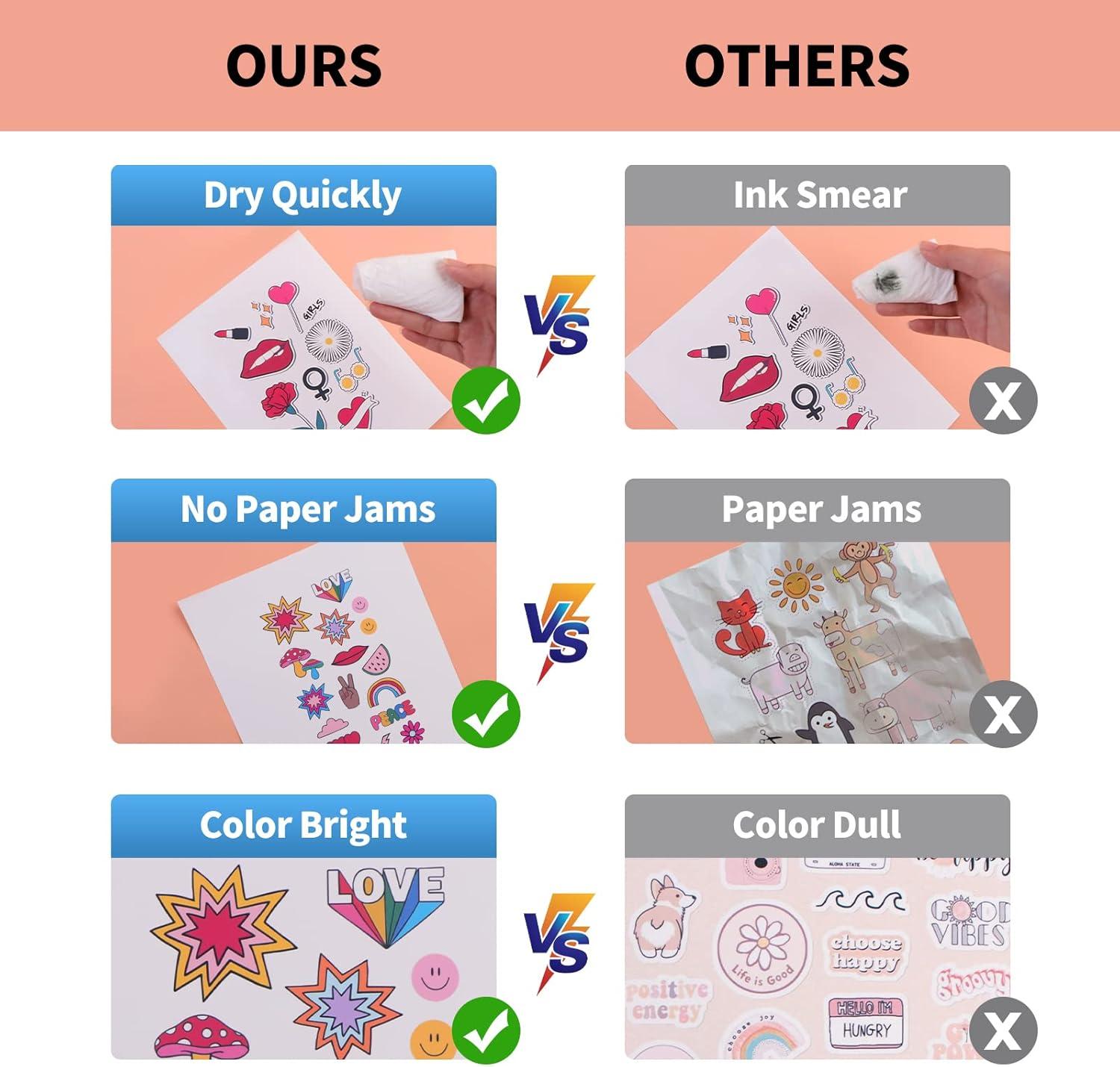 No Tearing & Jamming: Sticker printer paper specifically designed for inkjet printers, features moderate thickness to prevent paper jams. Double protection ensures integrity of the printable vinyl. Note: Use only what you need and seal the rest after use