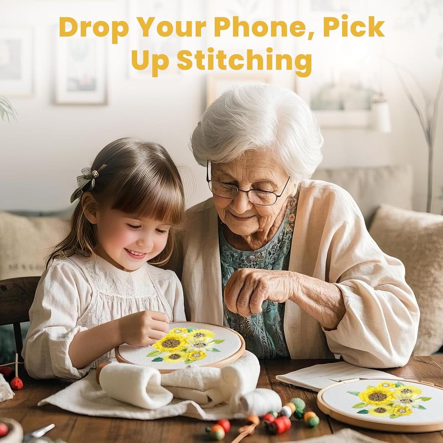 STUNNING 3D SUNFLOWER: Unlike flat embroidery kits, our 3D Sunflower Embroidery kit uses multi-layered carving (petal height +2.5mm) to create tactile botanical art with sculptural depth. The raised 3D texture enhances creative fun and serves as both visual art and a tactile 3D display, perfect for parent-child bonding or stress relief