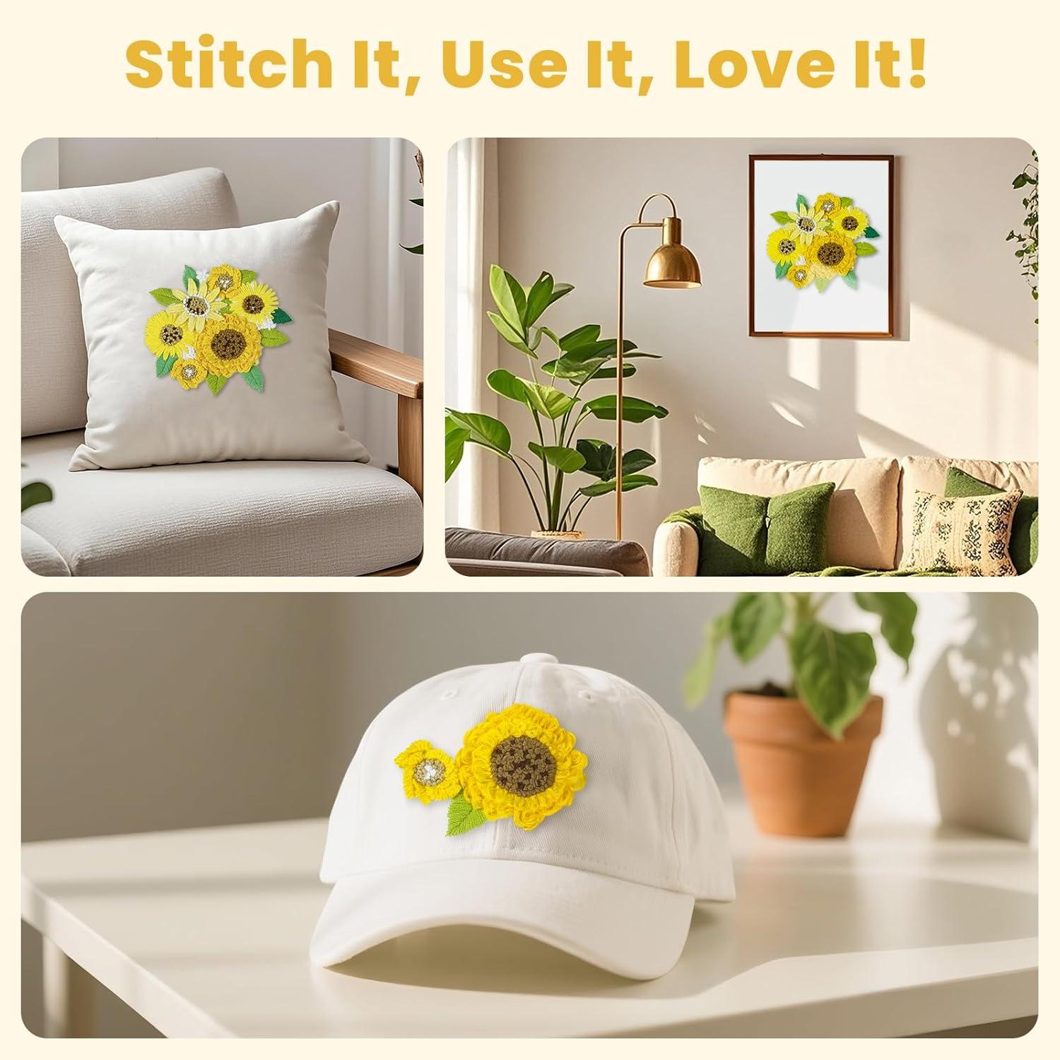 PREMIUM QUALITY MATERIALS: You will receive an embroidery kits featuring high-quality organic cotton embroidery fabric and vibrant embroidery threads. The three-dimensional sunflowers are stitched with layered long and short stitches to simulate the natural curvature of petals, offering a sense of depth and three-dimensionality far beyond the single visual effect of flat embroidery. Once you master the technique, you can also stitch them onto denim jackets, canvas bags, and other items to create personalized works of art