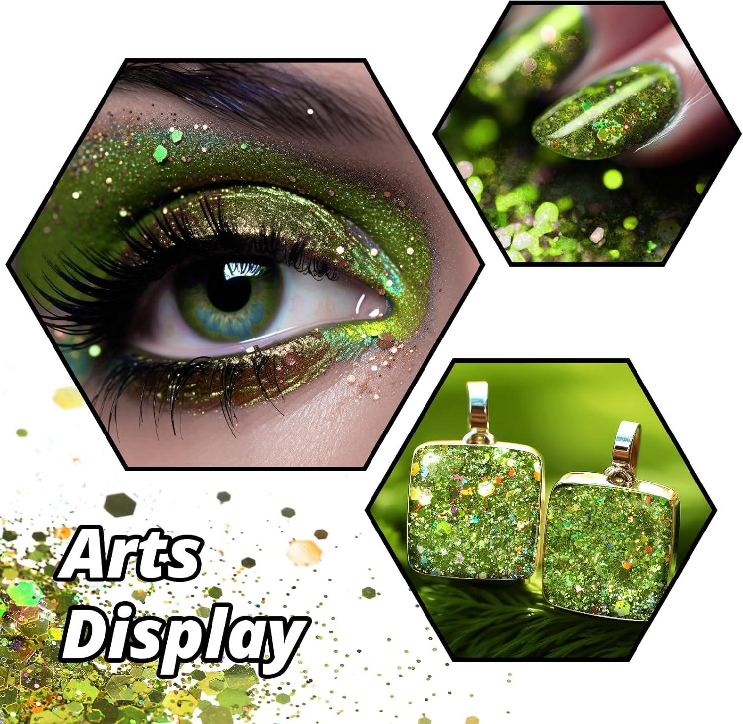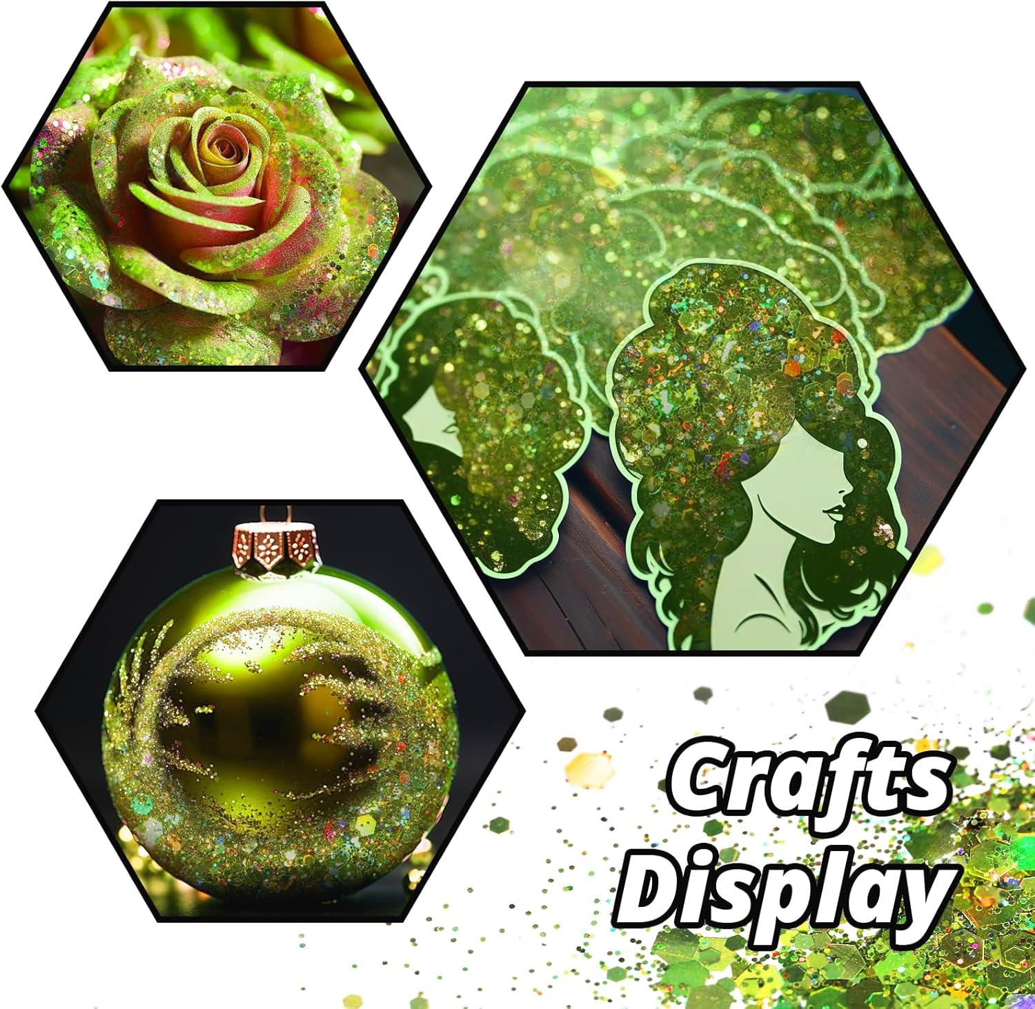 STUNNING HOLOGRAPHIC EFFECT. Mixed different size hexagonal sequins and fine glitter, our holographic glitter performs an extraordinary effect different from ordinary craft glitter. This chunky glitter for crafts offers a metallic finish while providing a secondary rainbow finish. It shines differently in dazzling colors in different light angles, taking on a sparkling holographic color. Add sparkle, shine, and texture effects to your projects