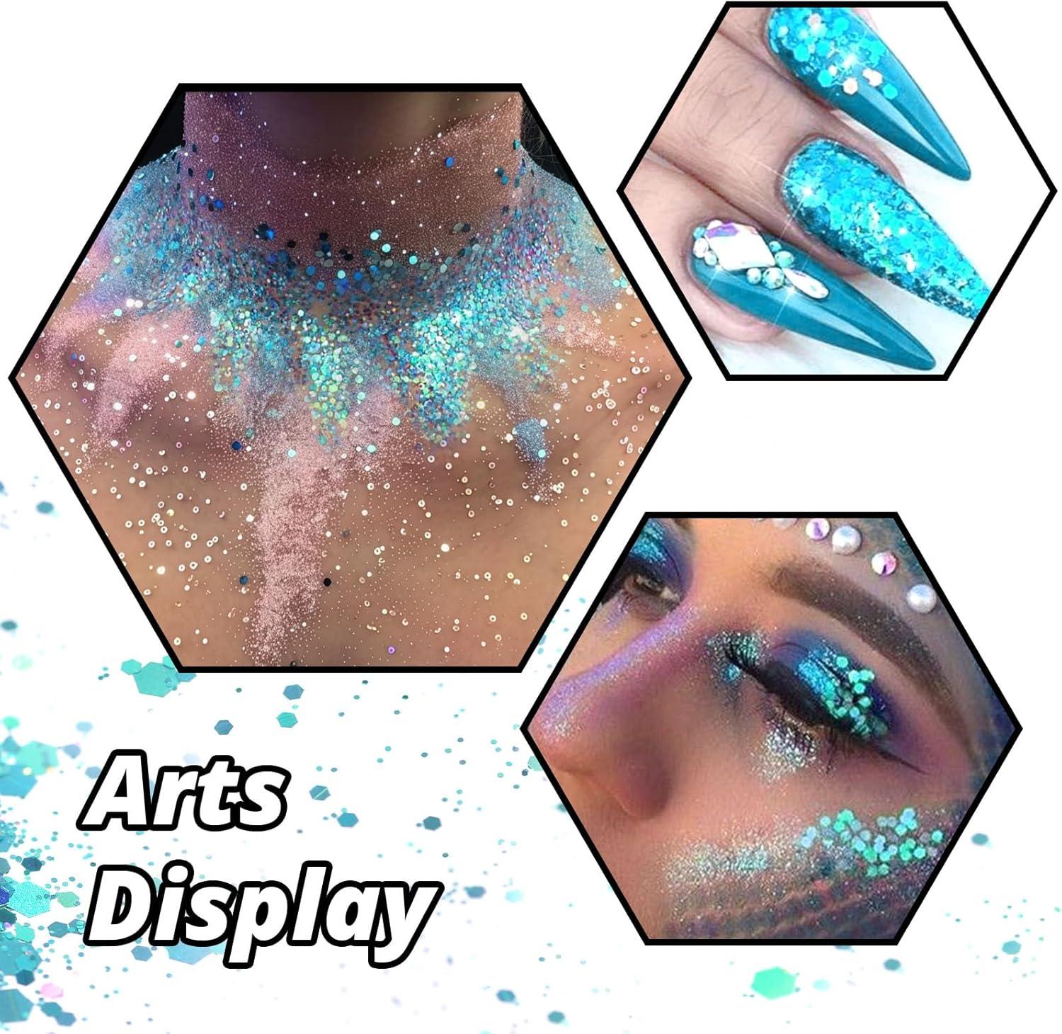 STUNNING HOLOGRAPHIC EFFECT. Mixed different size hexagonal sequins and fine glitter, our holographic glitter performs an extraordinary effect different from ordinary craft glitter. This chunky glitter for crafts offers a metallic finish while providing a secondary rainbow finish. It shines differently in dazzling colors in different light angles, taking on a sparkling holographic color. Add sparkle, shine, and texture effects to your projects