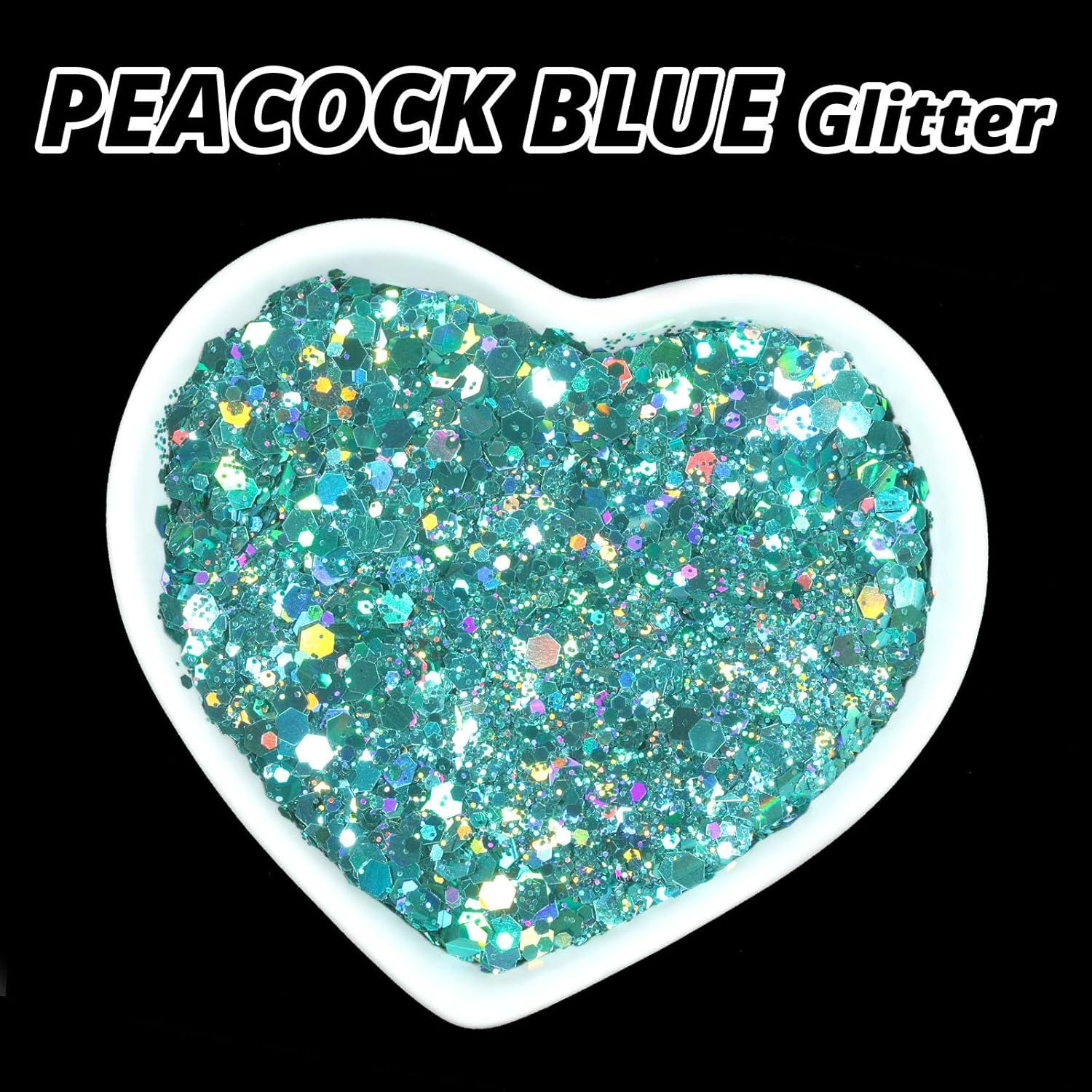 HTVRONT Black Glitter for Crafts – 100g Chunky Glitter for Resin, 3.53oz Holographic Glitter for Nail, Tumbler, Cosmetic, Festival(100g Turquoise Blue)