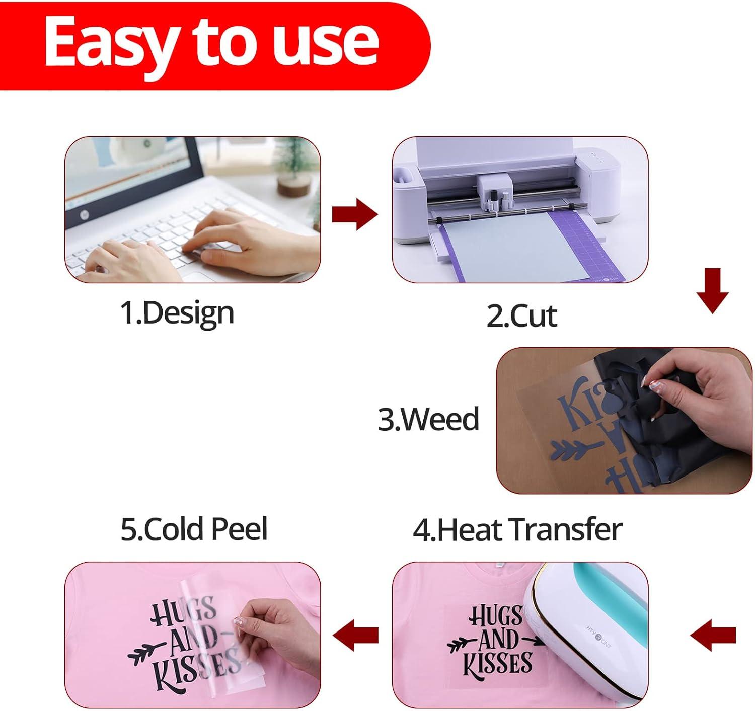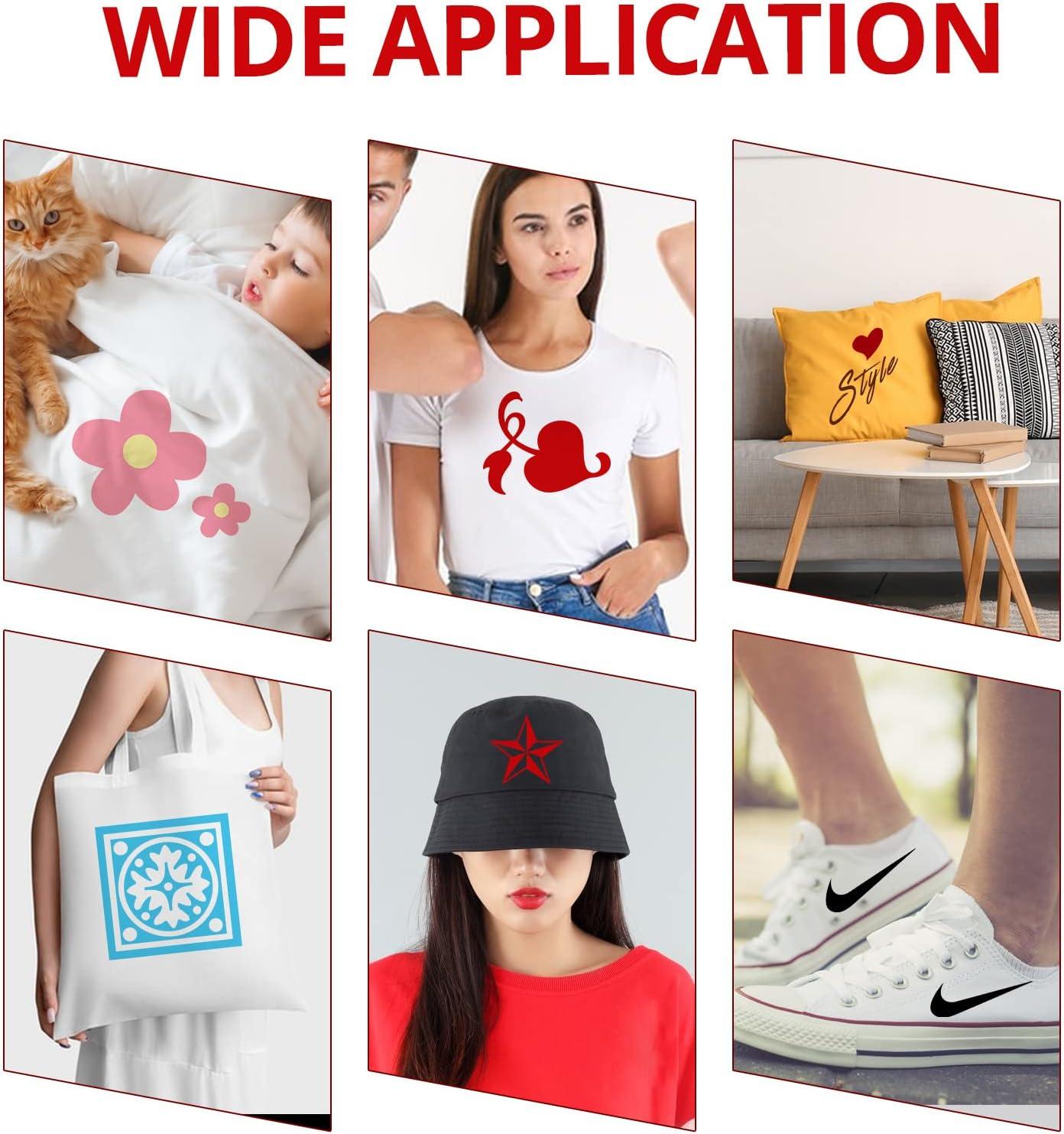 【Easy to Use】The htv vinyl bundle feature impressively pressure and temperature-sensitive make the weeding process smoothly. This htv sheets is temperature sensitive and easily transferred to any desired fabric surface. Note: Our heat transfer vinyl is cold stripped for use