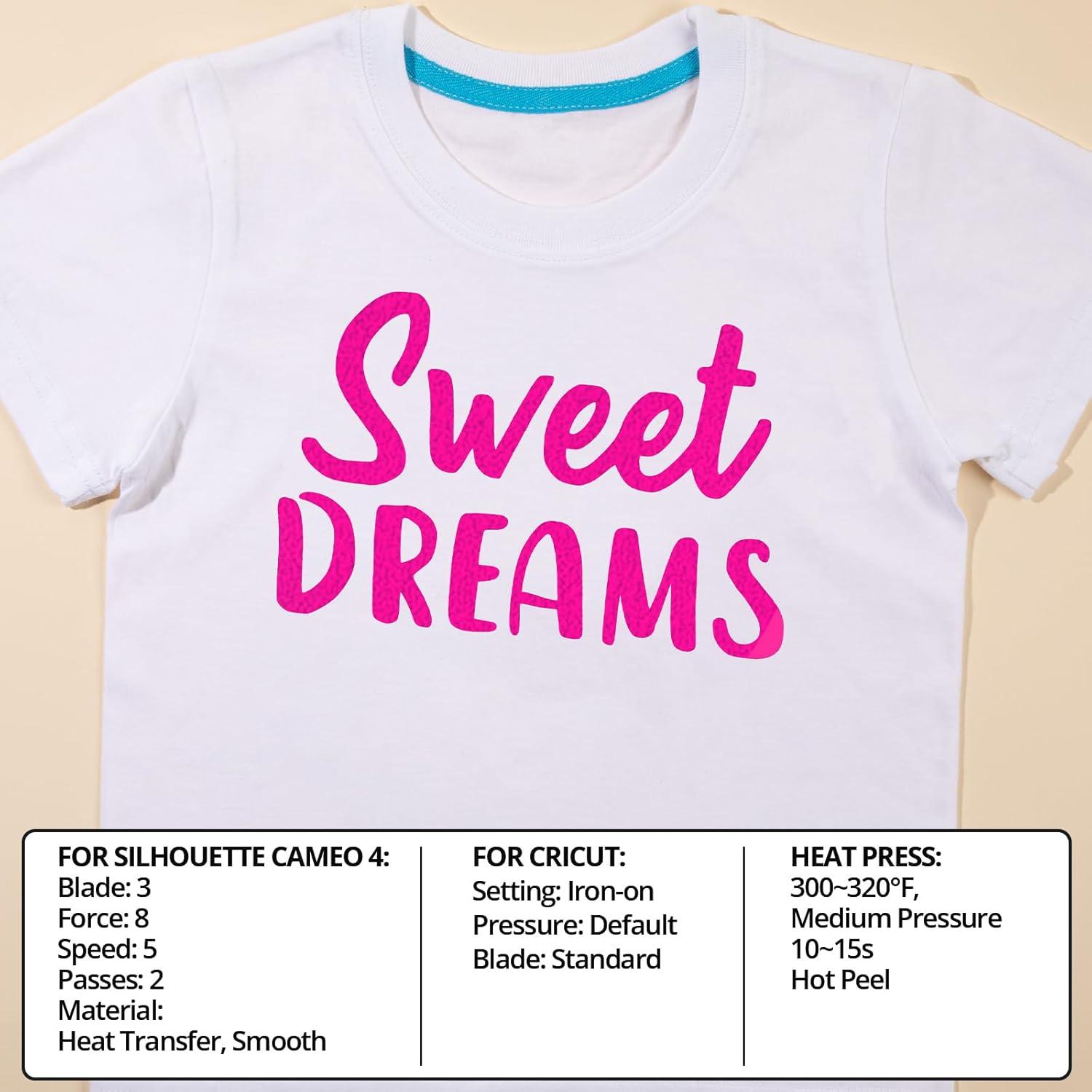 12 INCHES x 20 FEET ROllS: Our iron on vinyl rolls measure 12″x 20ft are easy and convenient to cut into different size of art designs or logos or letters and perfect for 12×12″ and 12×24″ cutting mats. Our vinyl are compatible for all cutter machines