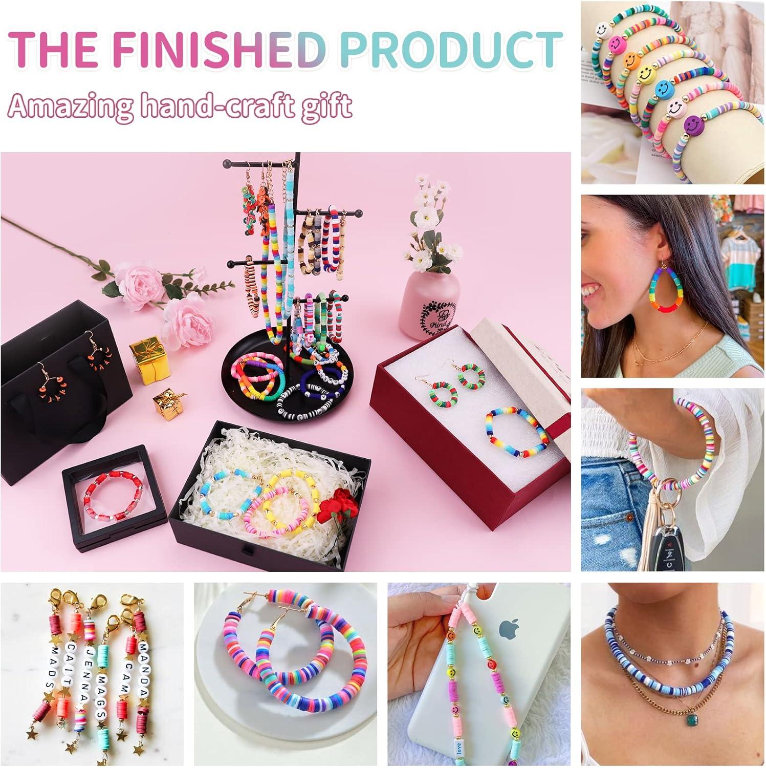 imageHTVRONT Bracelets Making Kit 16300 PCS 56 Colors Flat Polymer Clay Bead set Craft Gift Jewelry Accessory Supplies