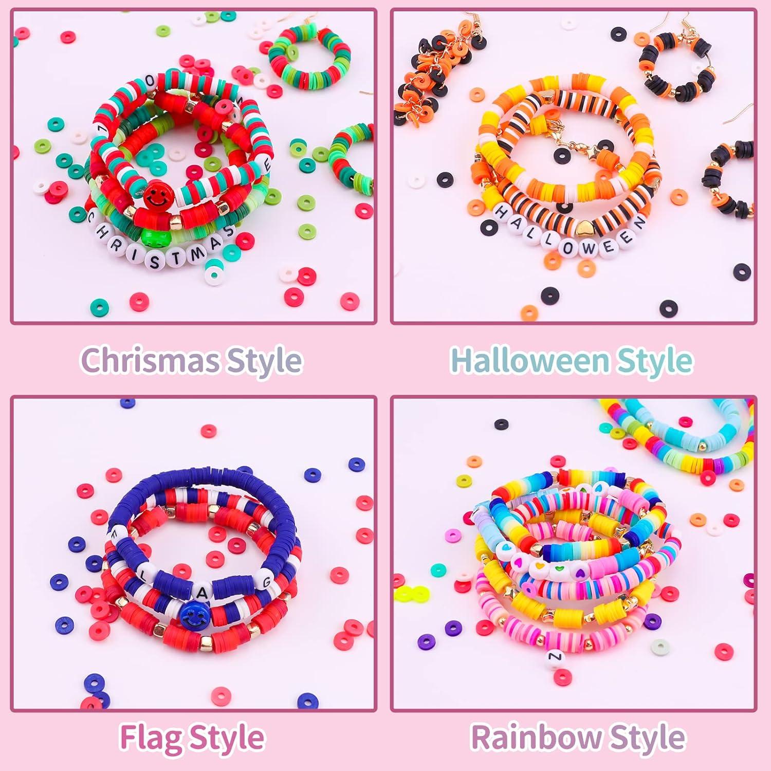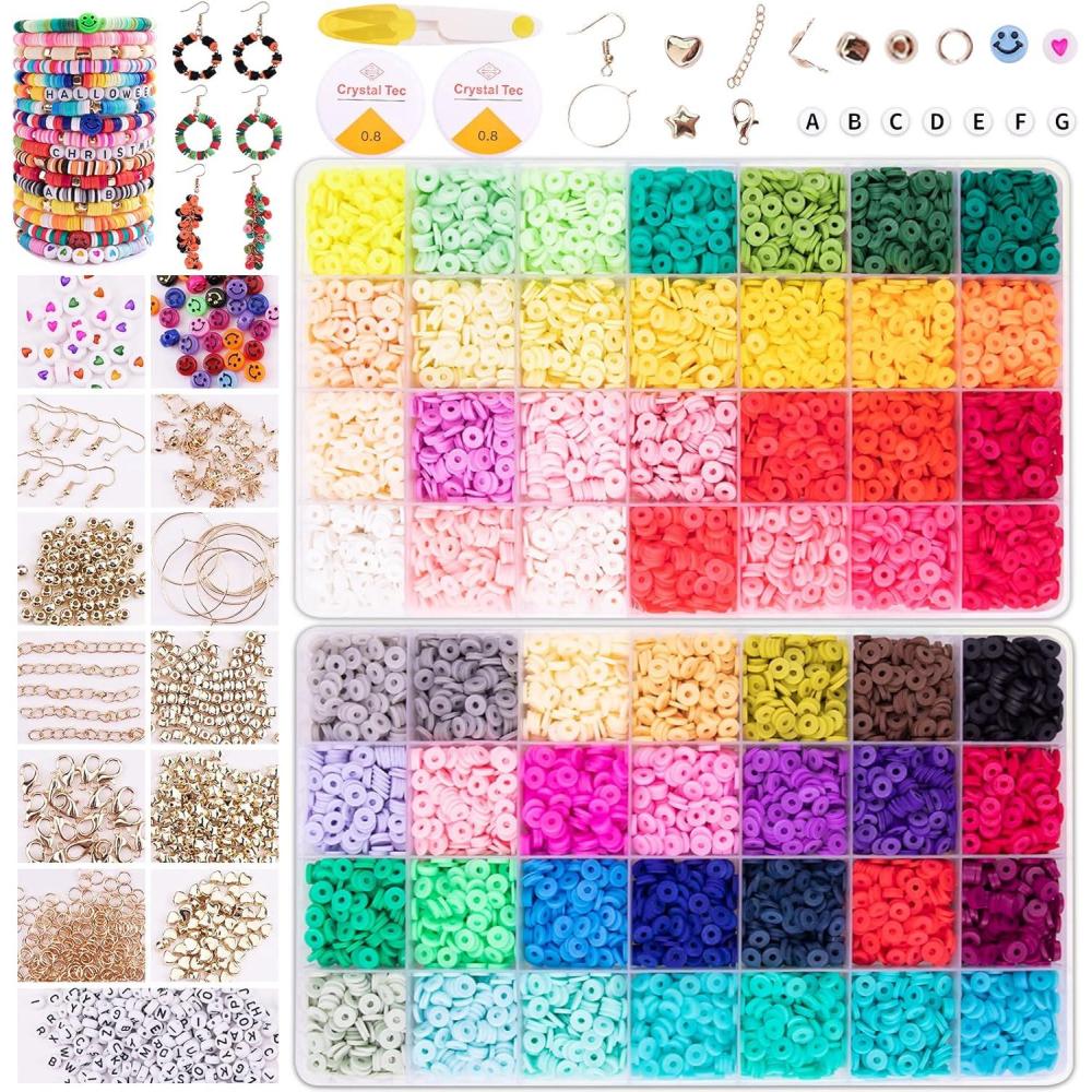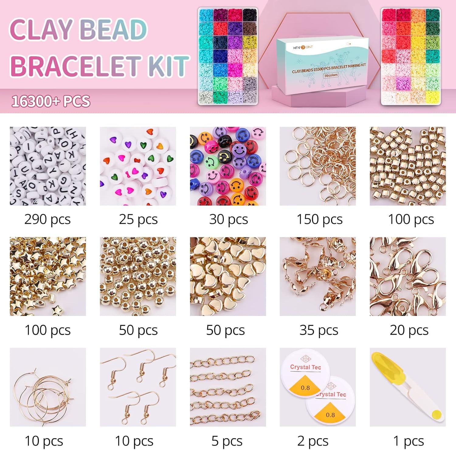 HTVRONT Bracelets Making Kit -16300 PCS, 56 Colors Flat Polymer Clay Bead set Craft Gift, Jewelry Accessory Supplies