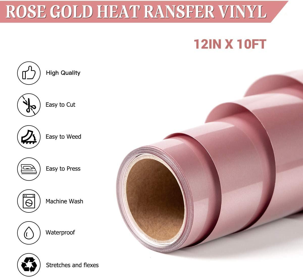 HTVRONT Champagne HTV Vinyl Roll - 12" x 10ft Champagne Gold Iron on Vinyl for Cricut & Silhouette Cameo, Heat Transfer Vinyl Rolls for t Shirts - Easy to Cut & Weed for Heat Vinyl Design(Rose Gold)