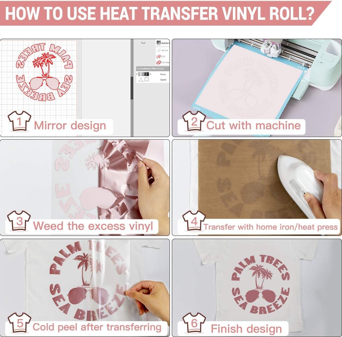 【Easy to Use】: Our champagne gold htv vinyl roll measures 10ftx12inch, perfect for 12×12″ and 12×24″ cutting mats and compatible with almost any professional or craft cutting machine on the market, ensuring every project saves time and effort, making custom garment decoration a breeze. our heat transfer vinyl rolls are perfect for beginners and professionals