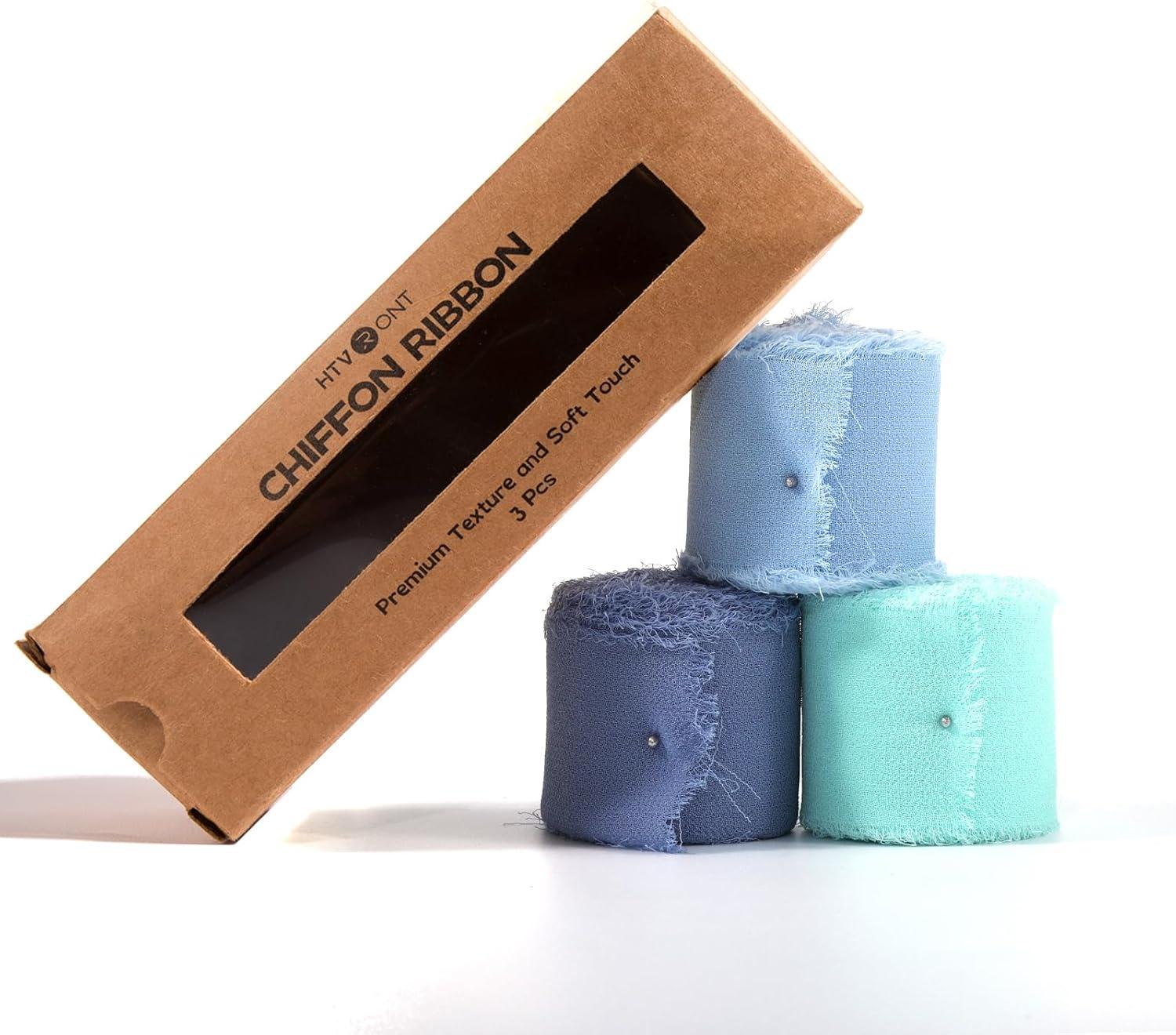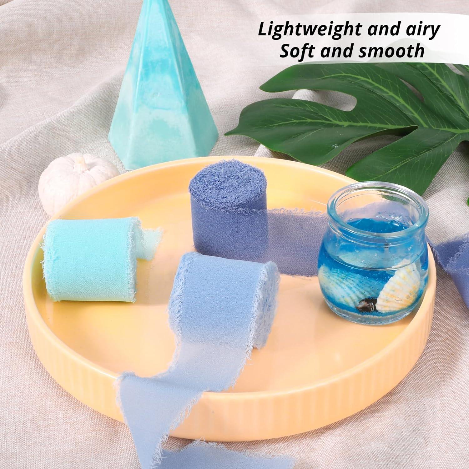 HTVRONT Chiffon Silk Ribbon 1.5" x 7Yd Soft Handmade Fringe Frayed Edged Baby Shower Bridal Bouquets Wedding Invitation Decor (Purple)(Blue)