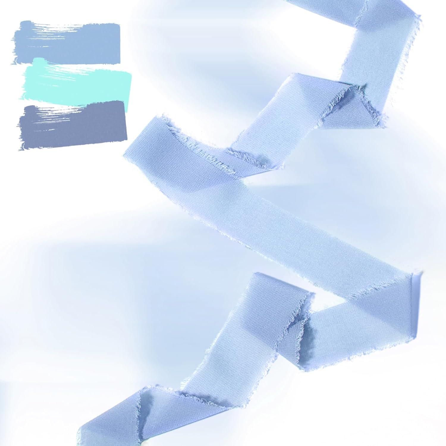 imageHTVRONT Chiffon Silk Ribbon 15quot x 7Yd Soft Handmade Fringe Frayed Edged Baby Shower Bridal Bouquets Wedding Invitation Decor PurpleBlue