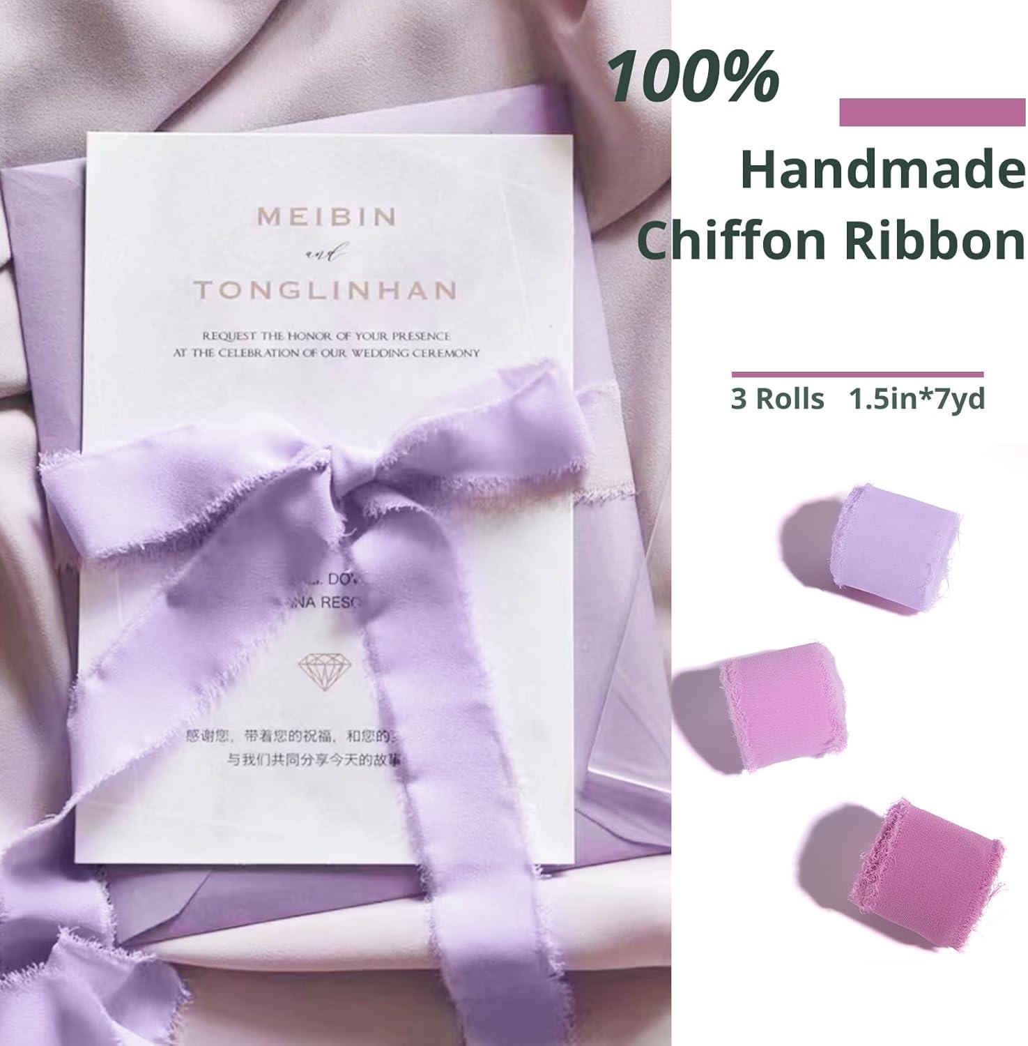 HTVRONT Chiffon Silk Ribbon 1.5" x 7Yd Soft Handmade Fringe Frayed Edged Baby Shower Bridal Bouquets Wedding Invitation Decor (Purple)(Purple)