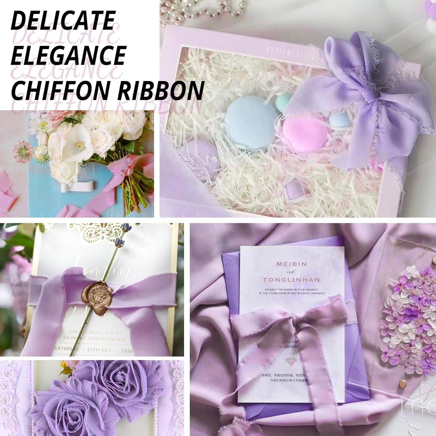 HTVRONT Chiffon Silk Ribbon 1.5″ x 7Yd Soft Handmade Fringe Frayed Edged Baby Shower Bridal Bouquets Wedding Invitation Decor (Purple)(Cream & Green)