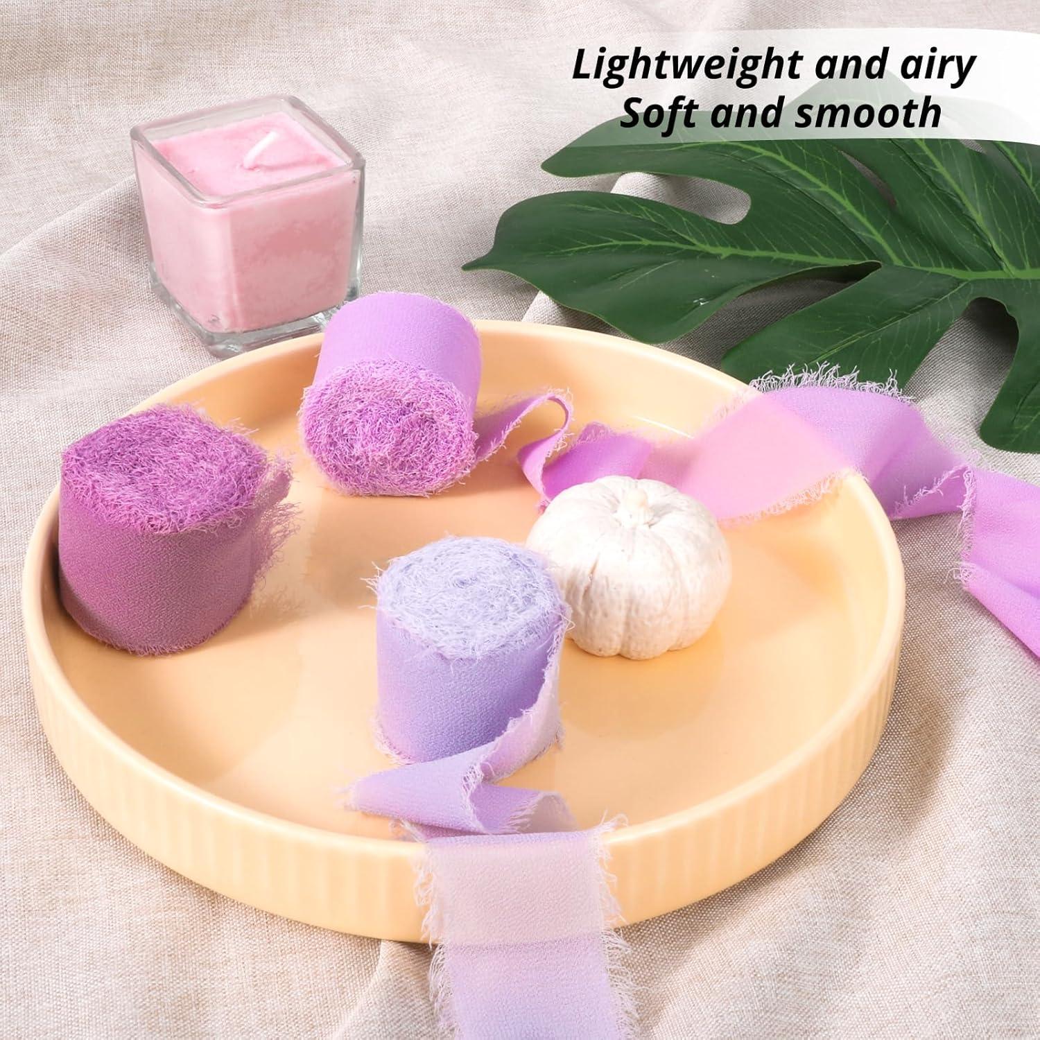 imageHTVRONT Chiffon Silk Ribbon 15quot x 7Yd Soft Handmade Fringe Frayed Edged Baby Shower Bridal Bouquets Wedding Invitation Decor PurpleCream  Green