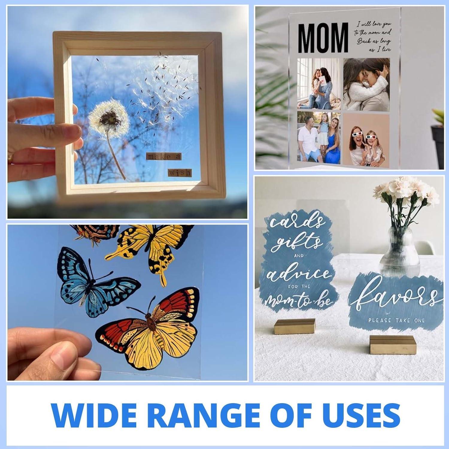 EASY TO CUT AND ENGRAVING. The appropriate thickness of 0.04inches ensures the flexibility of this acrylic sheets for laser cutting. It is easy to engraving with cricut maker and you can also use a utility knife for DIY cutting. Feel free to create your own personalized clear plexiglass sheet with vinyl, sticker, engraving and texture paint