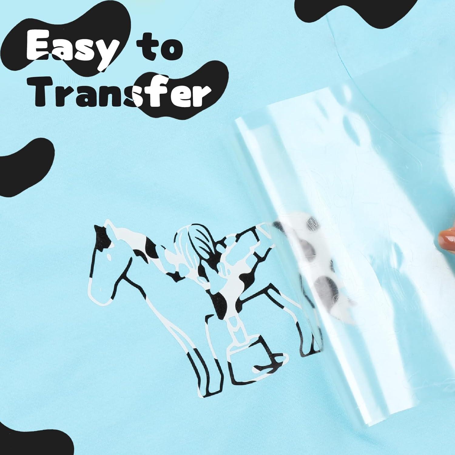 ✂ EASY TO CUT & WEED & TRANSFER ✂ Our cowhide heat transfer vinyl will save your time which you may waste on each image or letter, because you can cut and weed easily through the designs just right. The animal printed iron on vinyl is sensitive to temperature and pressure, which can be heat transferred on any t-shirt easily.