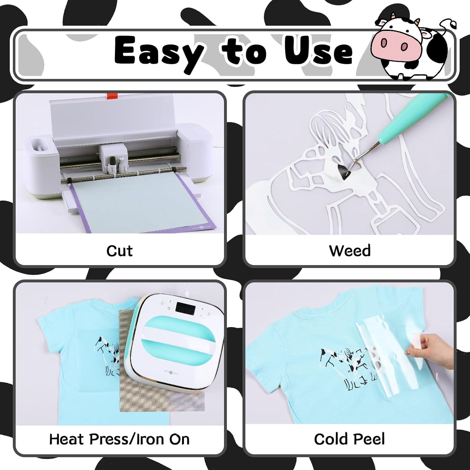👕 12 inches x 8 Feet 👕 HTVRONT cow print pattern htv vinyl rolls are easy and convenient to cut into different size of art designs or logos or letters and perfect for 12×12″ and 12×24″ cutting mats. Our animal print pattern iron on vinyl are compatible for all cutter machines.