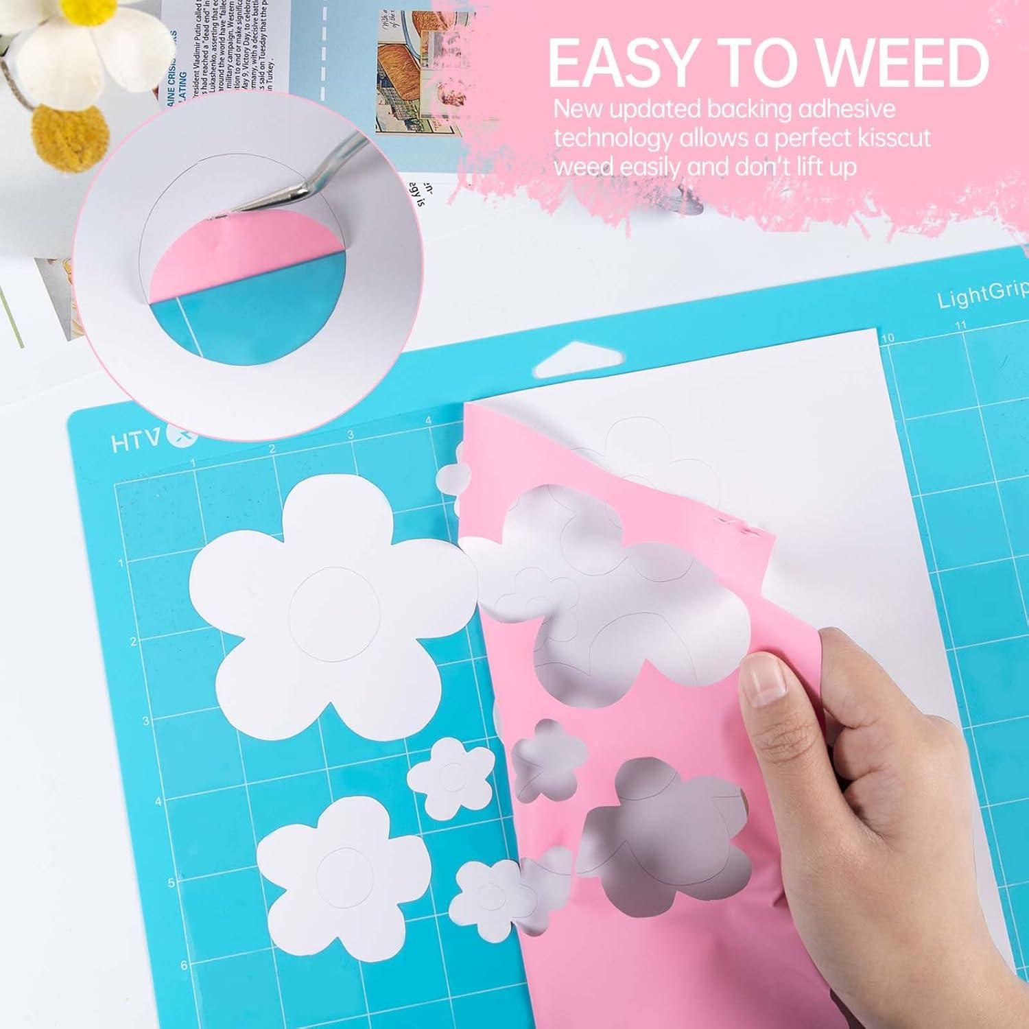 imageHTVRONT Cow Print HTV Vinyl  12quot x 8ft Cow Printed Animal Pattern Iron on Vinyl for Cricut ampamp Silhouette Cameo Cow Printed Heat Transfer Vinyl for Shirts  Easy to Cut ampamp Weed for Heat Vinyl DesignDPink Puff