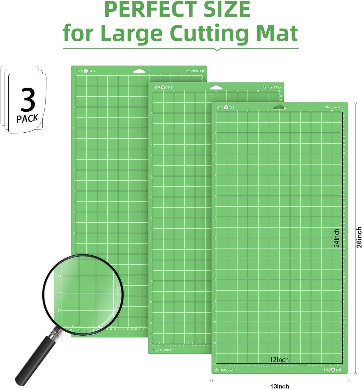 【Good Stickiness & Long-lasting】HTVRONT 12×12 inch cutting mats are the perfect amount of stickiness. Easy to use, cutting mat adhesive is strong enough to keep materials in place but peel off easily without any tear whatsoever. The cutting mat compatible with cricut still retains its stickiness after many uses. Better than name brand for a great value!