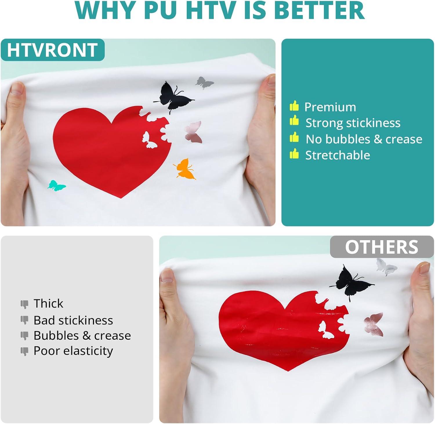 【PU SAFE & MORE DURABLE】Our glitter htv materials are SGS certified eco-friendly and are safe to baby wear. PU glitter htv vinyl is more soft, thinner, stretchier and smoother which can better integrate with fabrics, adheres perfectly after repeated washing cycles, no fade, no peel & no crack.