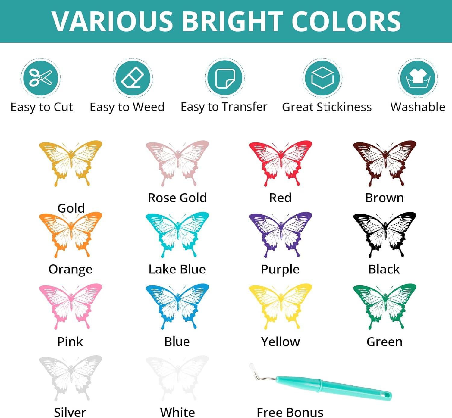 【EXCLUSIVE PREMIUM HTV BUNDLE】More fantastic color combinations & creative possibilities = 12 Pack 10''x5' Glitter HTV + Quality Weeding Tool + Specially Planned Gift Box. The group of glitter heat transfer vinyl can make your design a more advanced and special sense of light and shadow, emphasizing each other. Realize more exquisite patchwork and layered htv designs with this glitter iron on vinyl now!