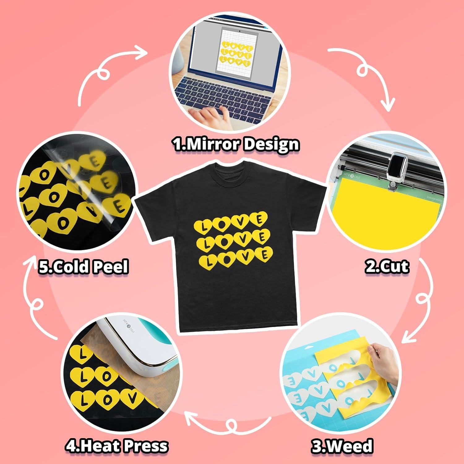 HTVRONT HTV Vinyl Rolls – 12″ x 15ft Black & White Heat Transfer Vinyl for Shirts, Iron-On Vinyl for All Cutting Machines – Easy to Cut & Weed for Heat Design(Assorted colors)