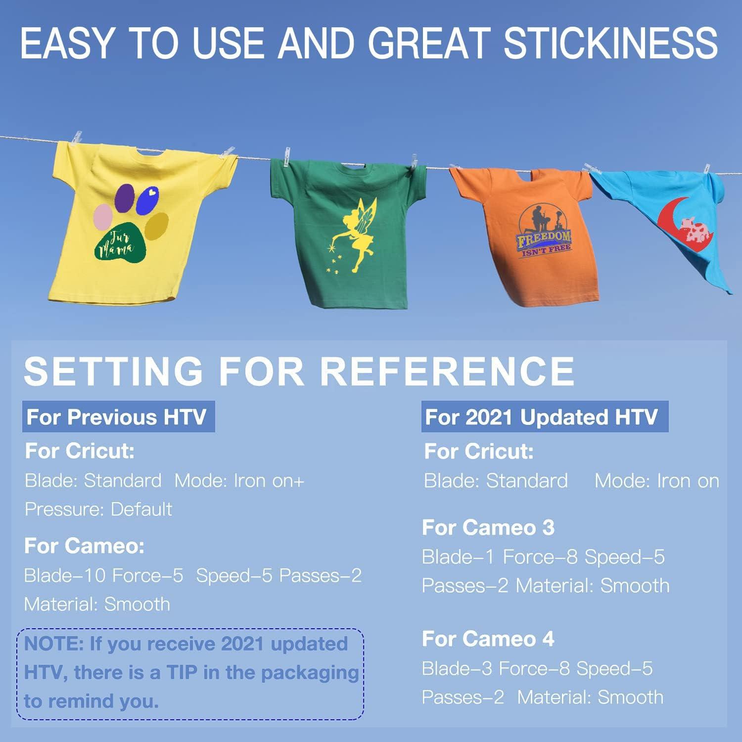 【EXCELLENT STICKINESS & MACHINE WASHABLE】We upgrade the material technology of our htv vinyl bundle, it can adhere to the fabric seamlessly and has held up well in the wash without fading, peeling, and cracking. Waiting 24 hours before the first time wash, even if you wash the heat transfer vinyl repeatedly, your design will keep the same color and can not come off