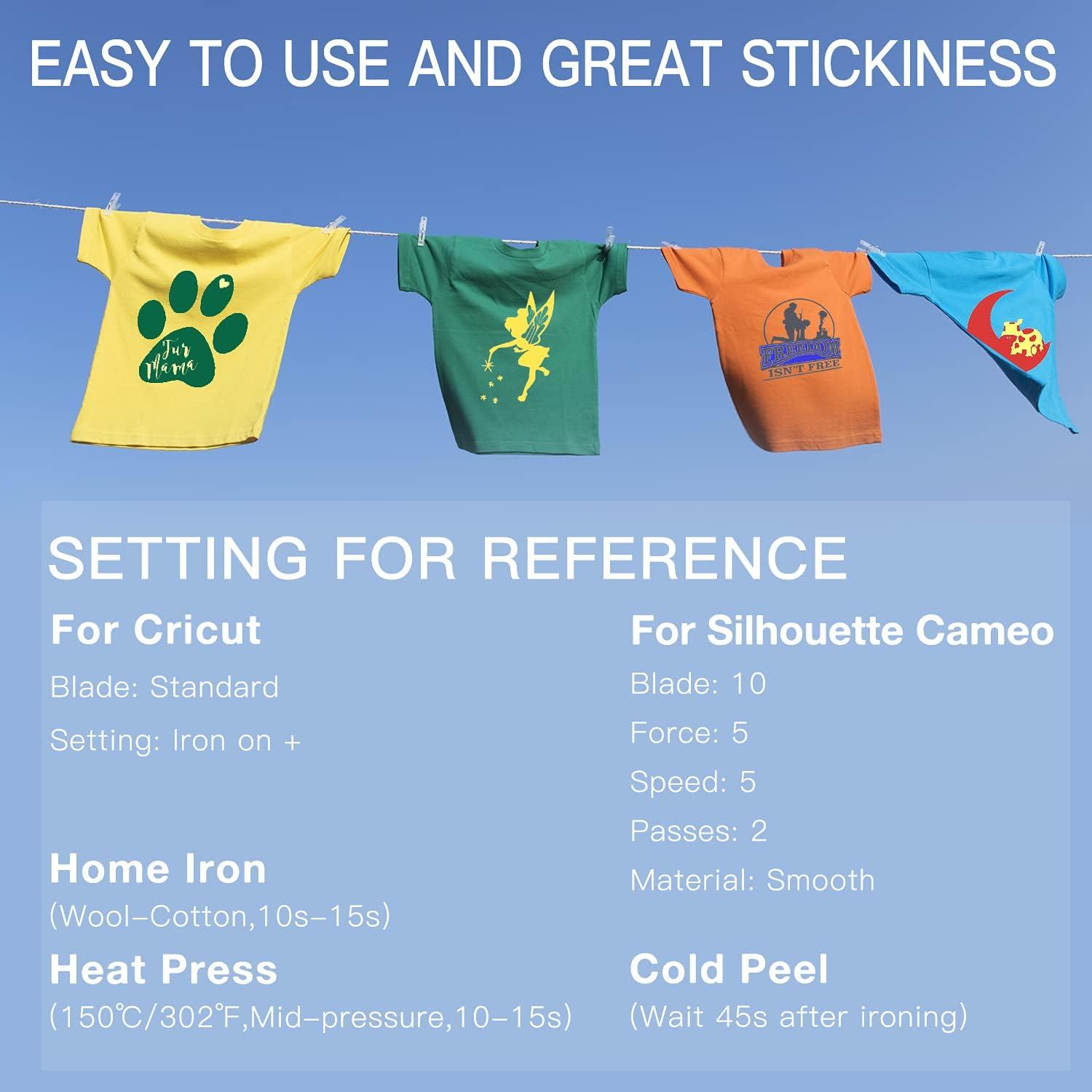 【GREAT FOR CUTTING & WEEDING & TRANSFER】This htv heat transfer vinyl bundle is made of SGS certified high-quality material, the right thickness and smoothness make it perform well in cutting and weeding. Also, our htv vinyl is temperature and pressure sensitive and can be easily heat transferred onto the desired surface