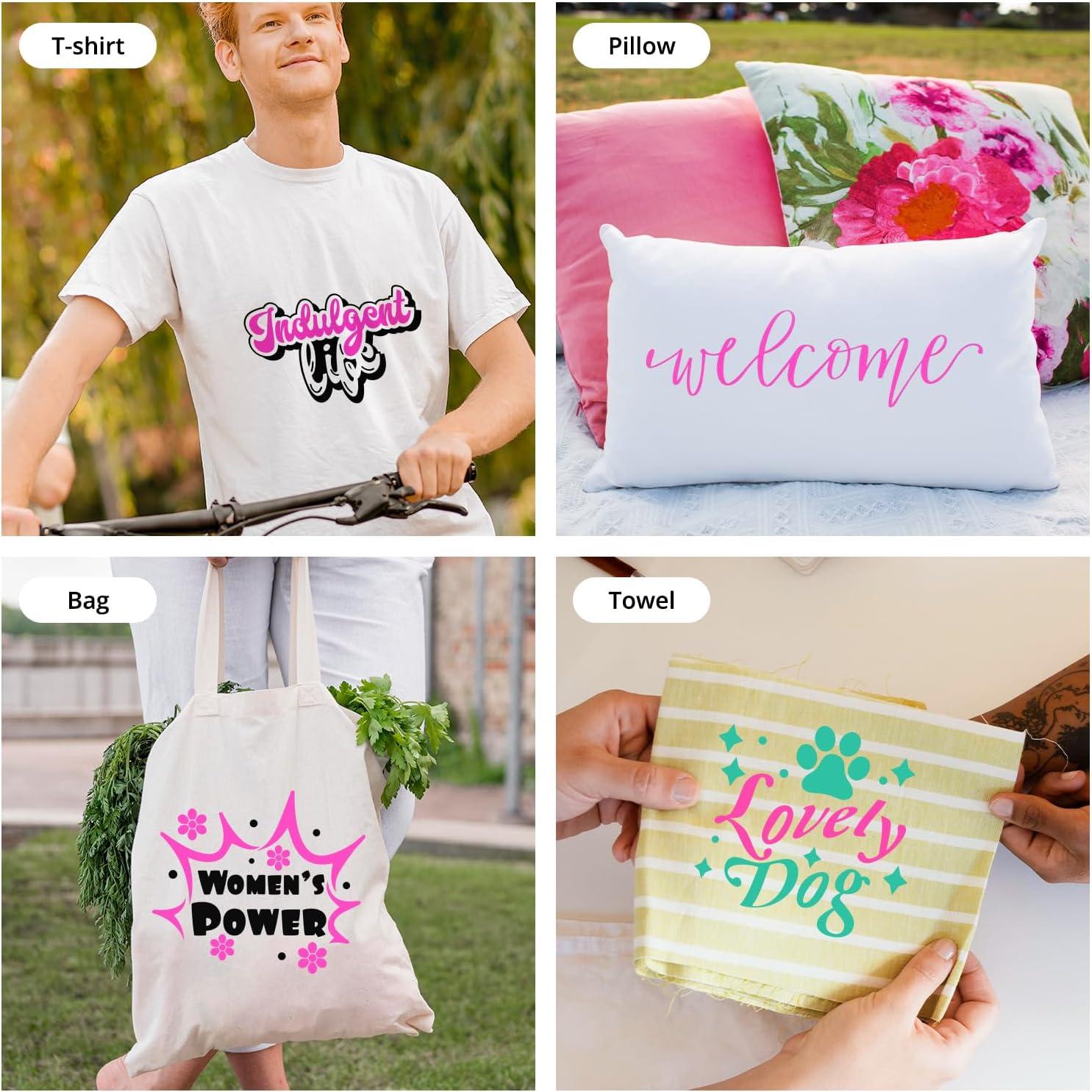 【WIDE APPLICATION & SAFE TO USE】Our iron on vinyl bundle has many applications in your life, such as your T-shirt, hat, handbag, pillow, shoes, socks, etc. The material of vinyl bundle is eco-friendly and safe to wear, it is suitable for cotton/cotton blends, athletic mesh fabrics, polyester, textiles, lycra/spandex, etc