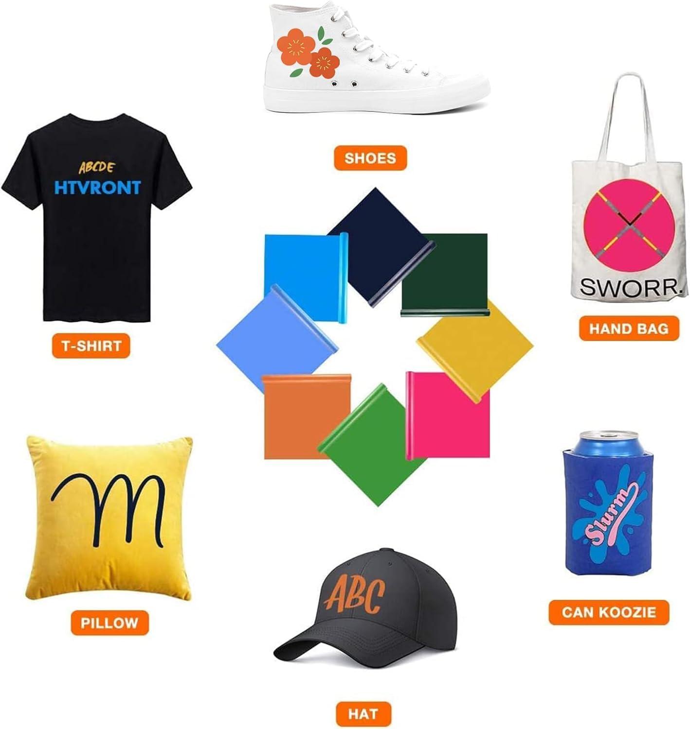 【WIDE APPLICATION & SAFE TO USE】Our iron on vinyl bundle has many applications in your life, such as your T-shirt, hat, handbag, pillow, shoes, socks, etc. The material of vinyl bundle is eco-friendly and safe to wear, it is suitable for cotton/cotton blends, athletic mesh fabrics, polyester, textiles, lycra/spandex, etc
