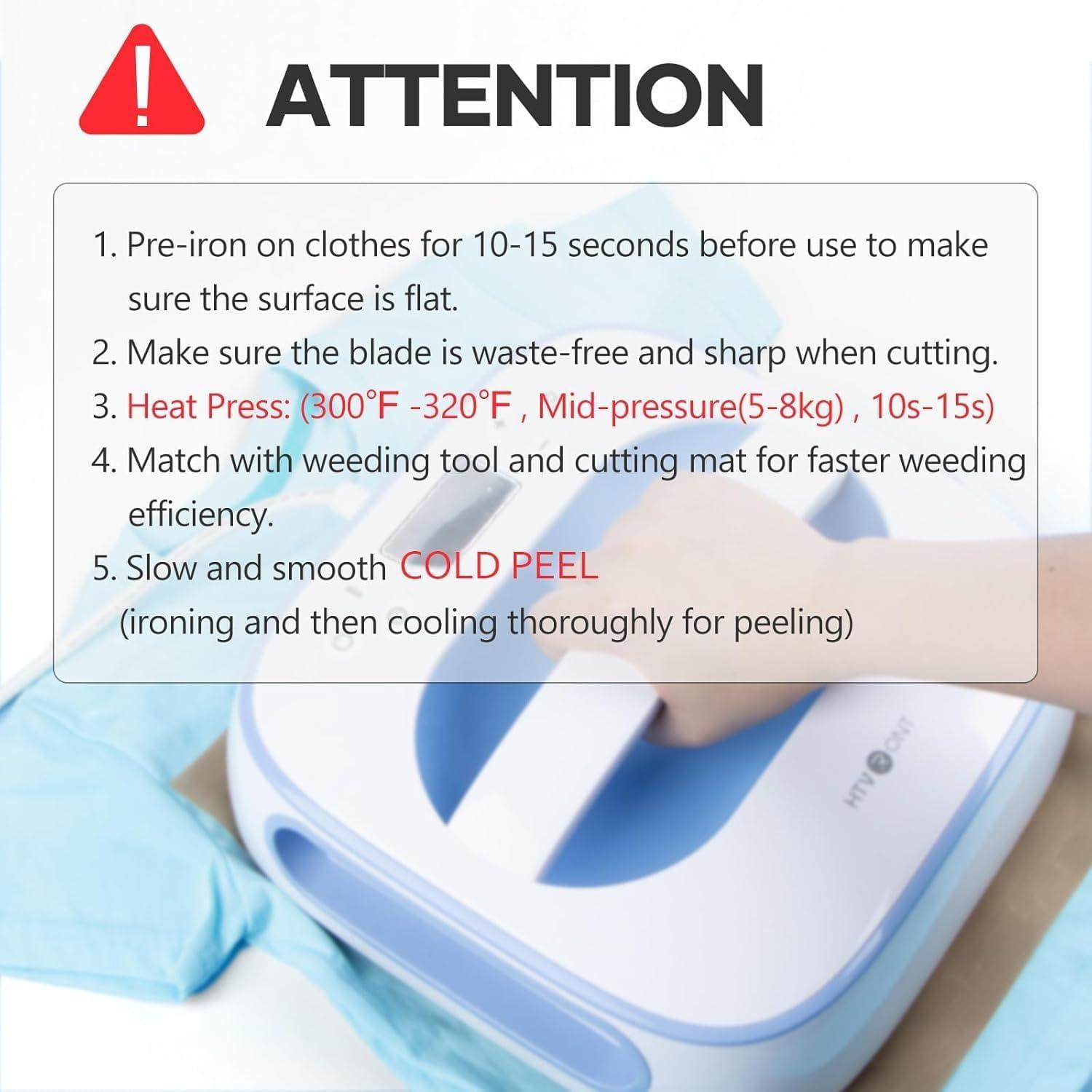 【GREAT FOR CUTTING & WEEDING & TRANSFER】This htv heat transfer vinyl bundle is made of SGS certified high-quality material, the right thickness and smoothness make it perform well in cutting and weeding. Also, our htv vinyl is temperature and pressure sensitive and can be easily heat transferred onto the desired surface
