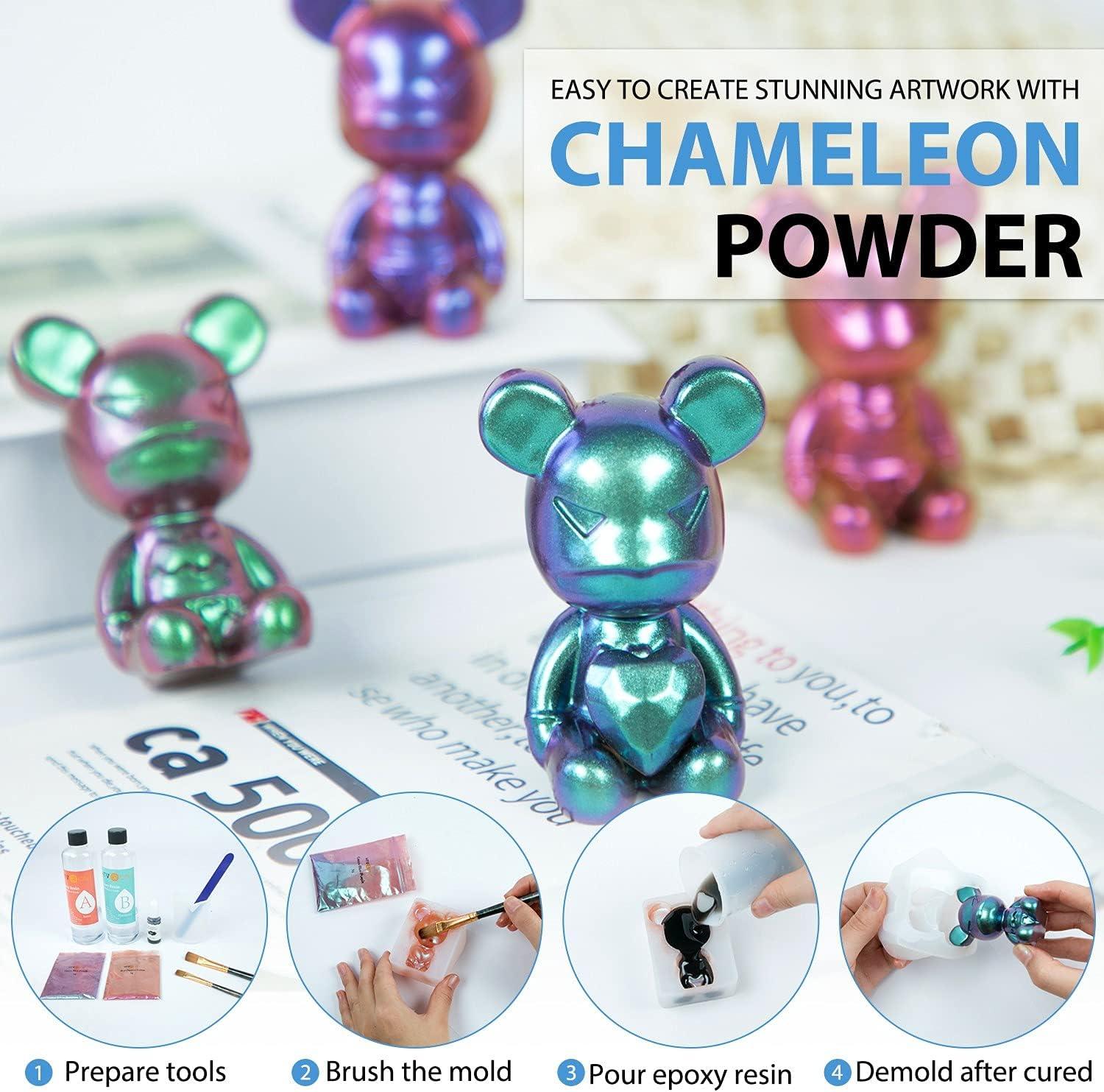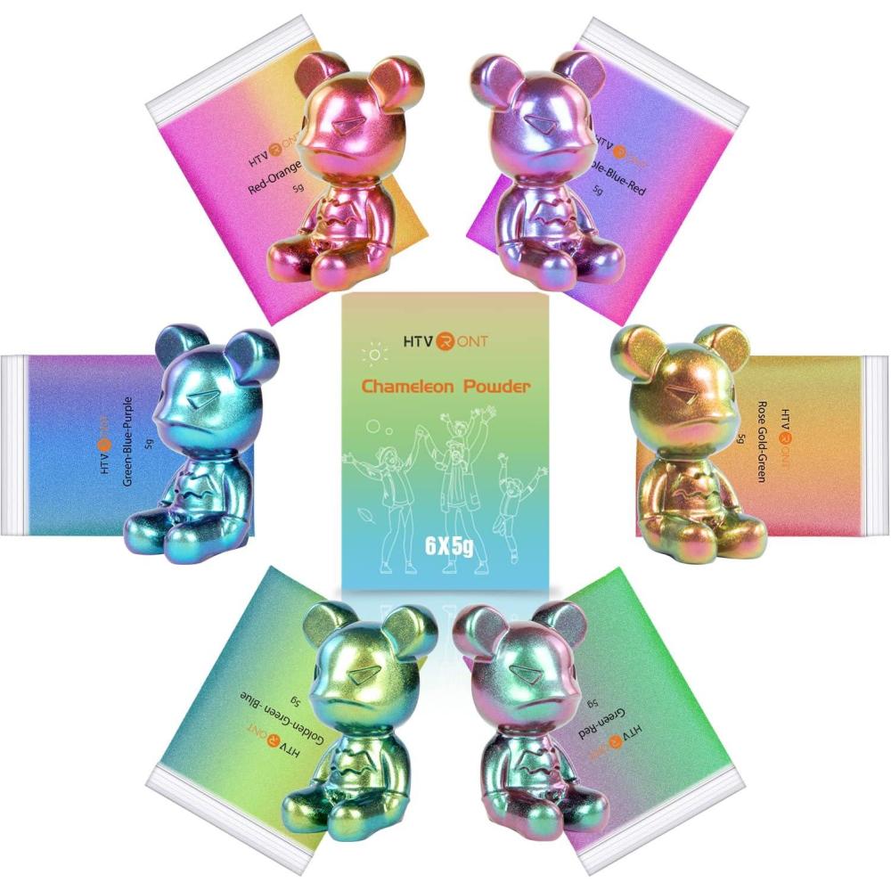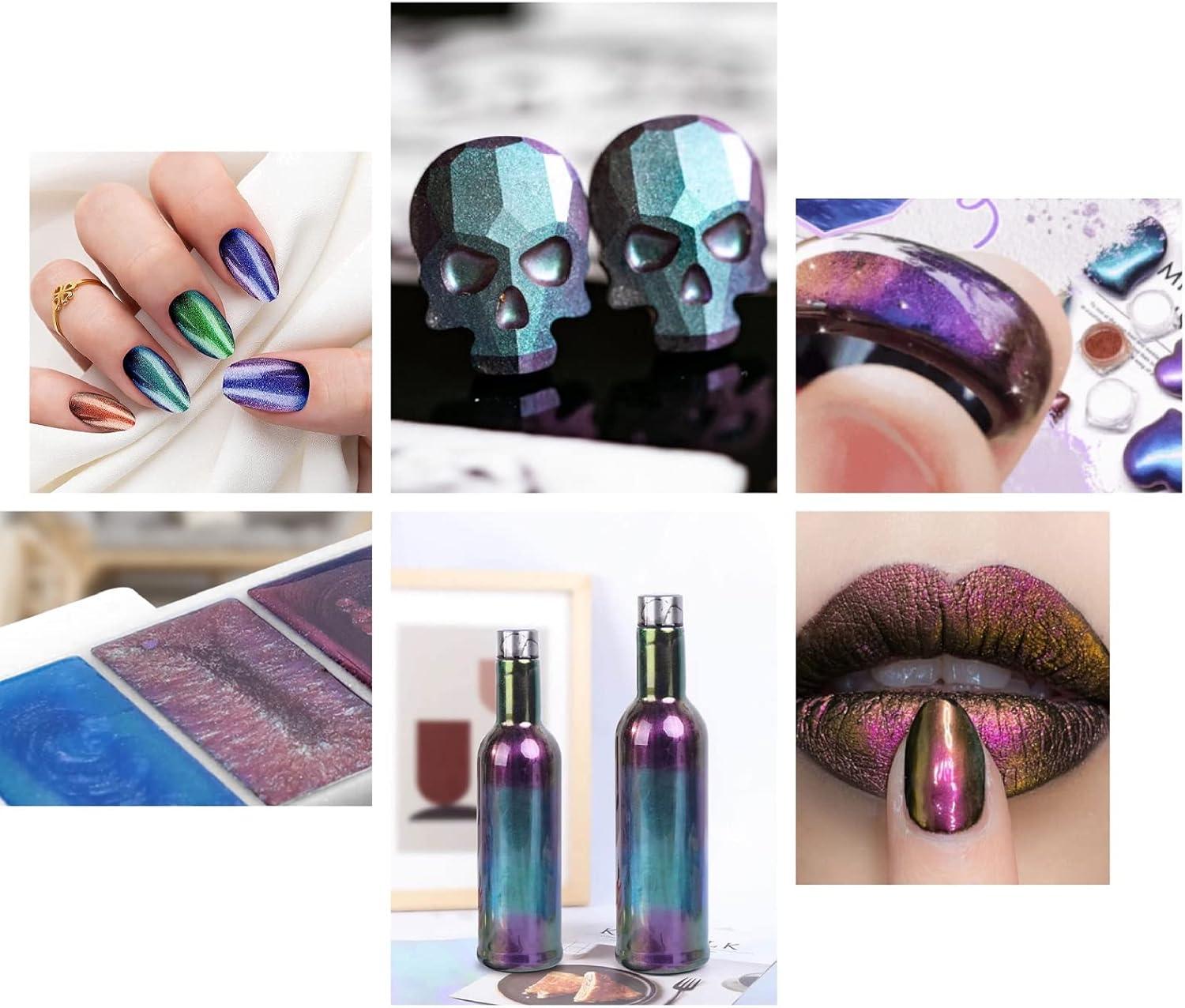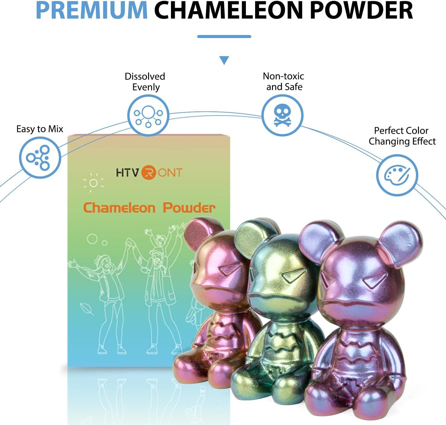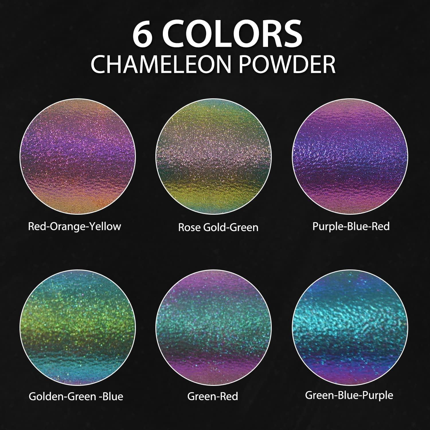 imageHTVRONT Glow in The Dark Pigment Powder 12 colors 07 oz  20 g Each Glow in The Dark Resin Pigment with UV Lamp Glow in the Dark Mica Powder for Epoxy Resin Acrylic Nails Bath Bomb etcChameleon Mica  6 Colors