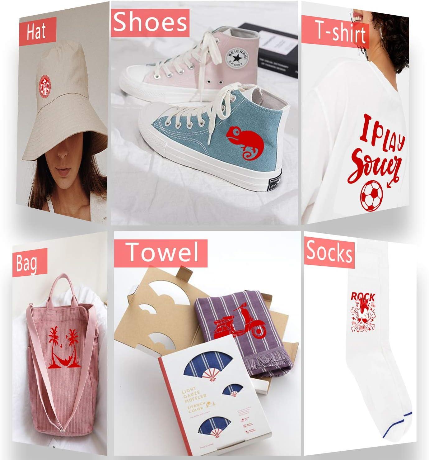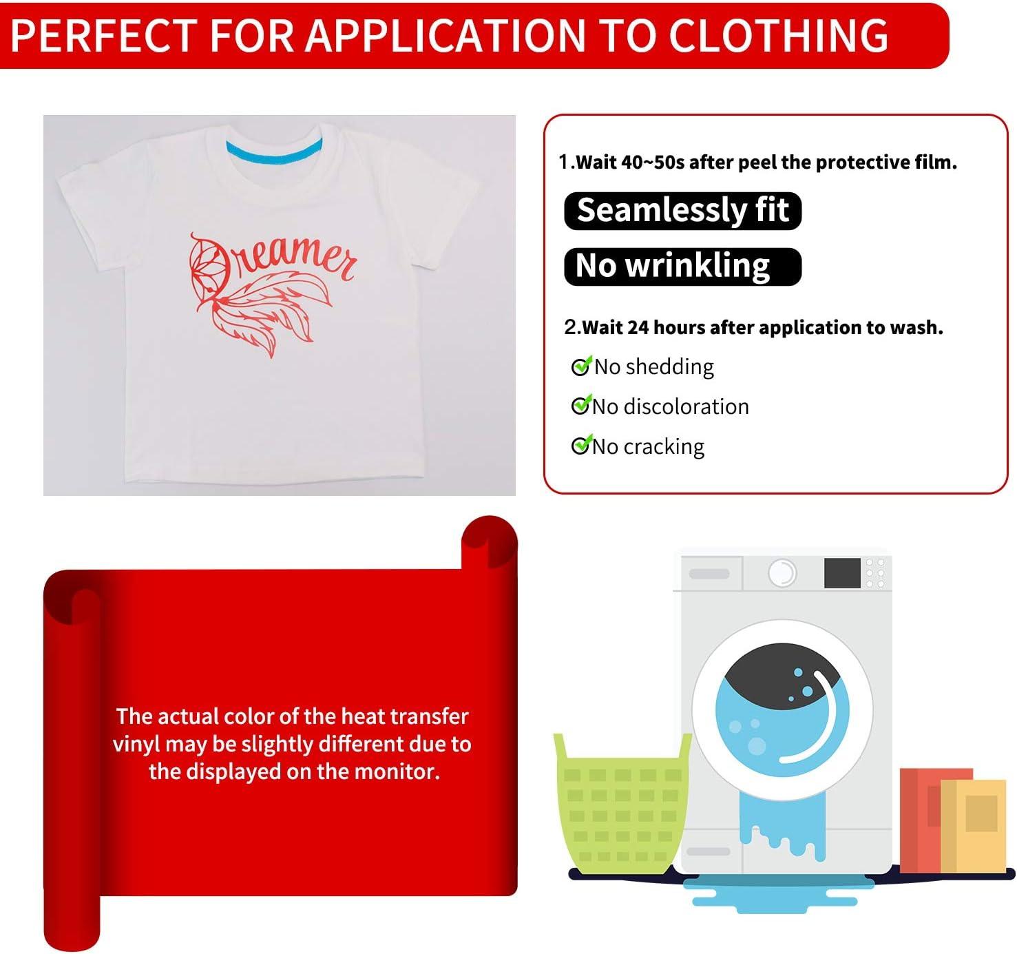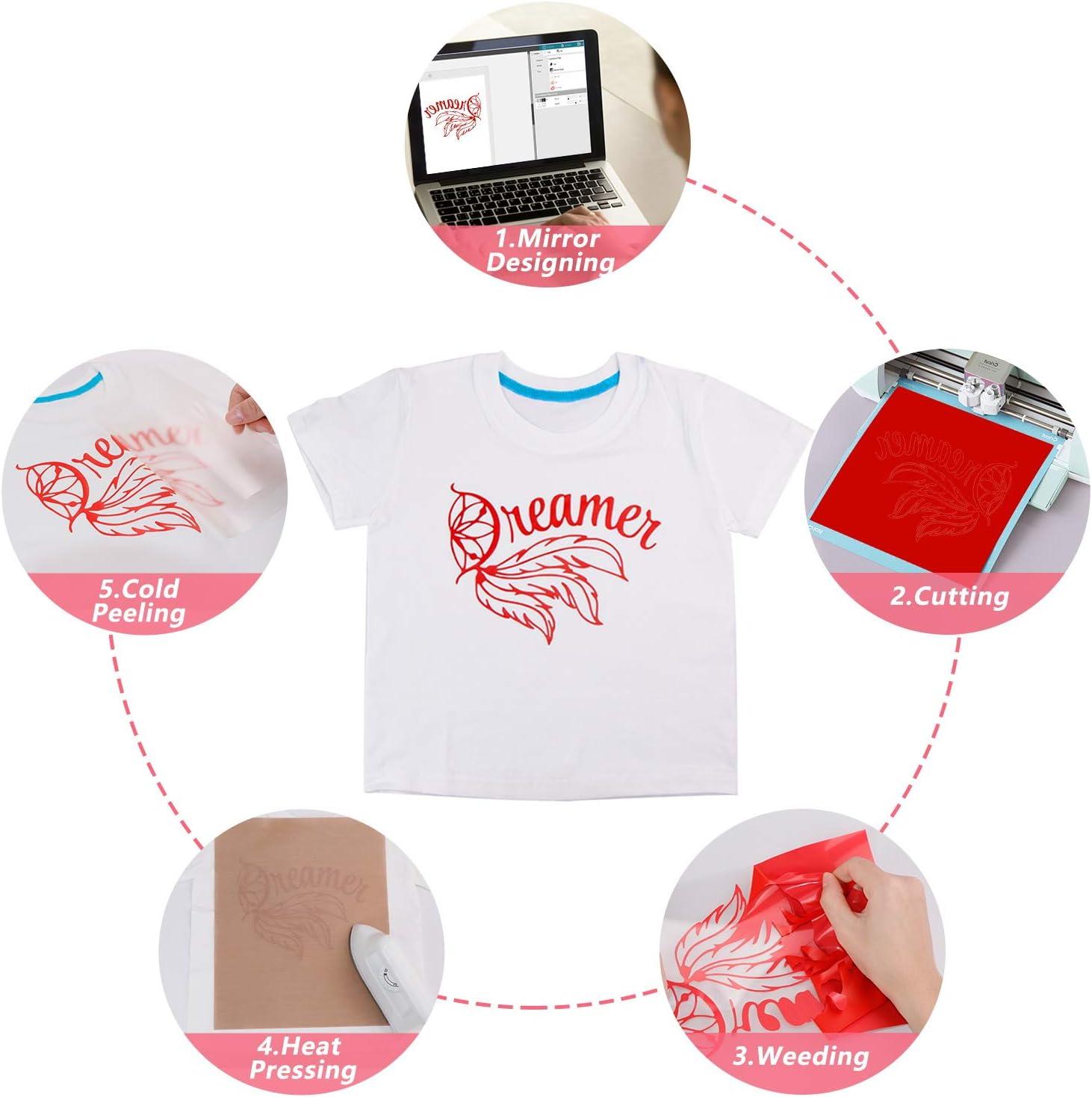 【EASY CUTTING, WEEDING & TRANSFERRING】 Heat Transfer Vinyl Roll is of premium quality with very good cutting application characteristics. Ready-to-cut material is designed for custom garment decoration. Pressure-sensitive adhesive backing and bonus weeding hook allows you weeding even small letters and fine designs easily! Quickly and easily apply the adhesive-backed HTV to fabric using a hot iron or heat press. Our iron on vinyl makes beginners feel like PROS