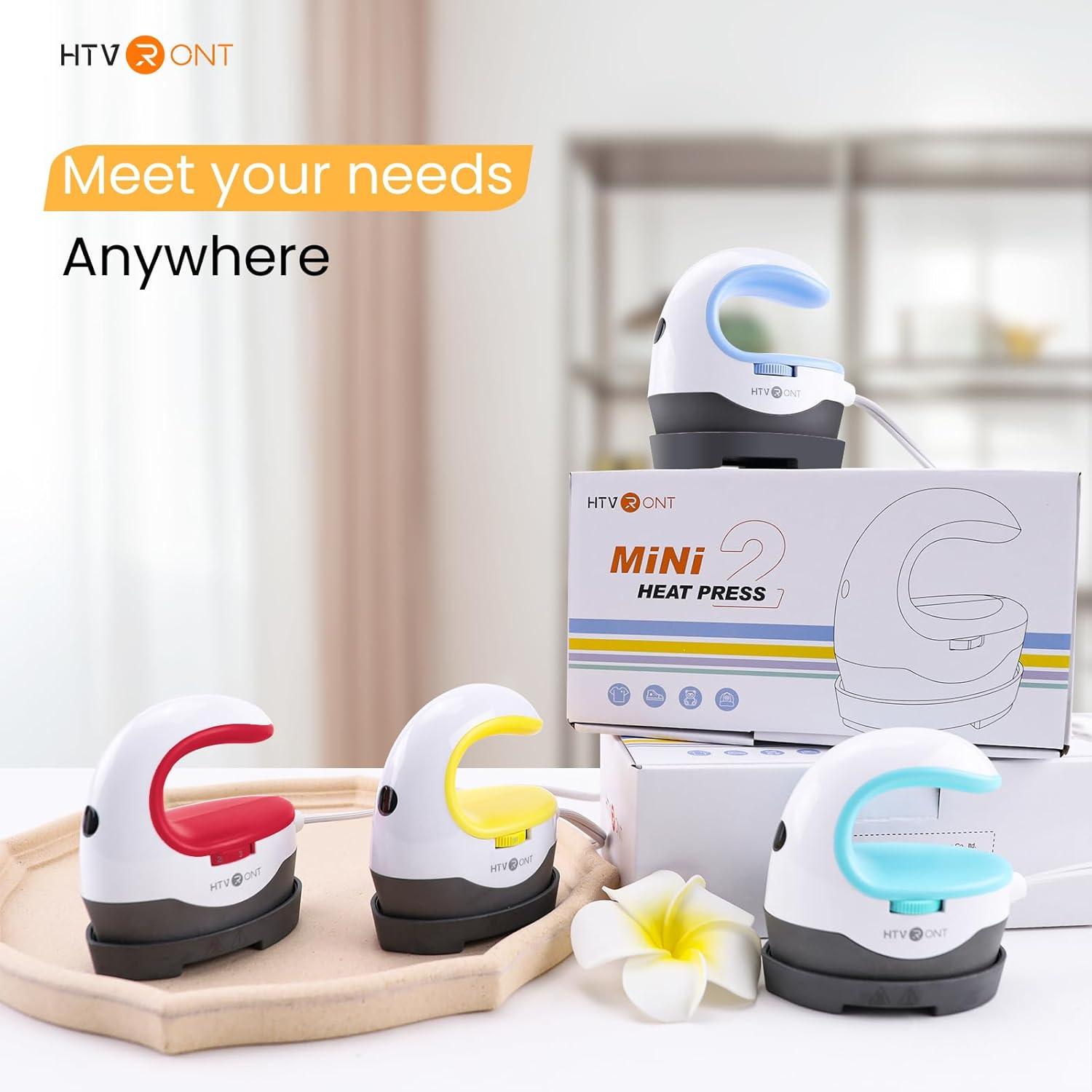 HTVRONT Heat Press H1 Mini Heat Press Machine, Small Heat Press Portable Iron Press Machine for T Shirts, Hats, Heating Transfer Projects (H1 Pink)(Yellow)