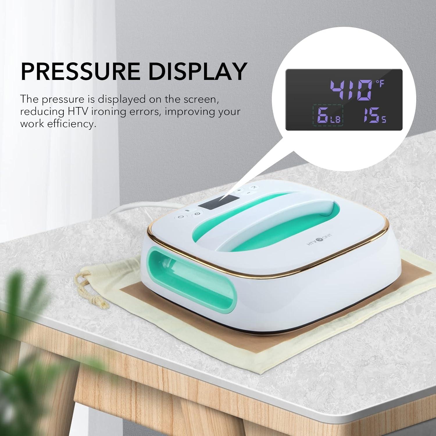 【Large Size & Unique Pressure Display】- The 10″*10″ heating surface is much larger than other mini heat press, so you can easily finish full t-shirt designs with one heating. Besides, the temperature and time settings can accommodate a wide variety of materials and heat settings. Furthermore this hat heat press has a unique pressure display, helping you to apply precise pressure and making HTV work so incredibly easy and pro