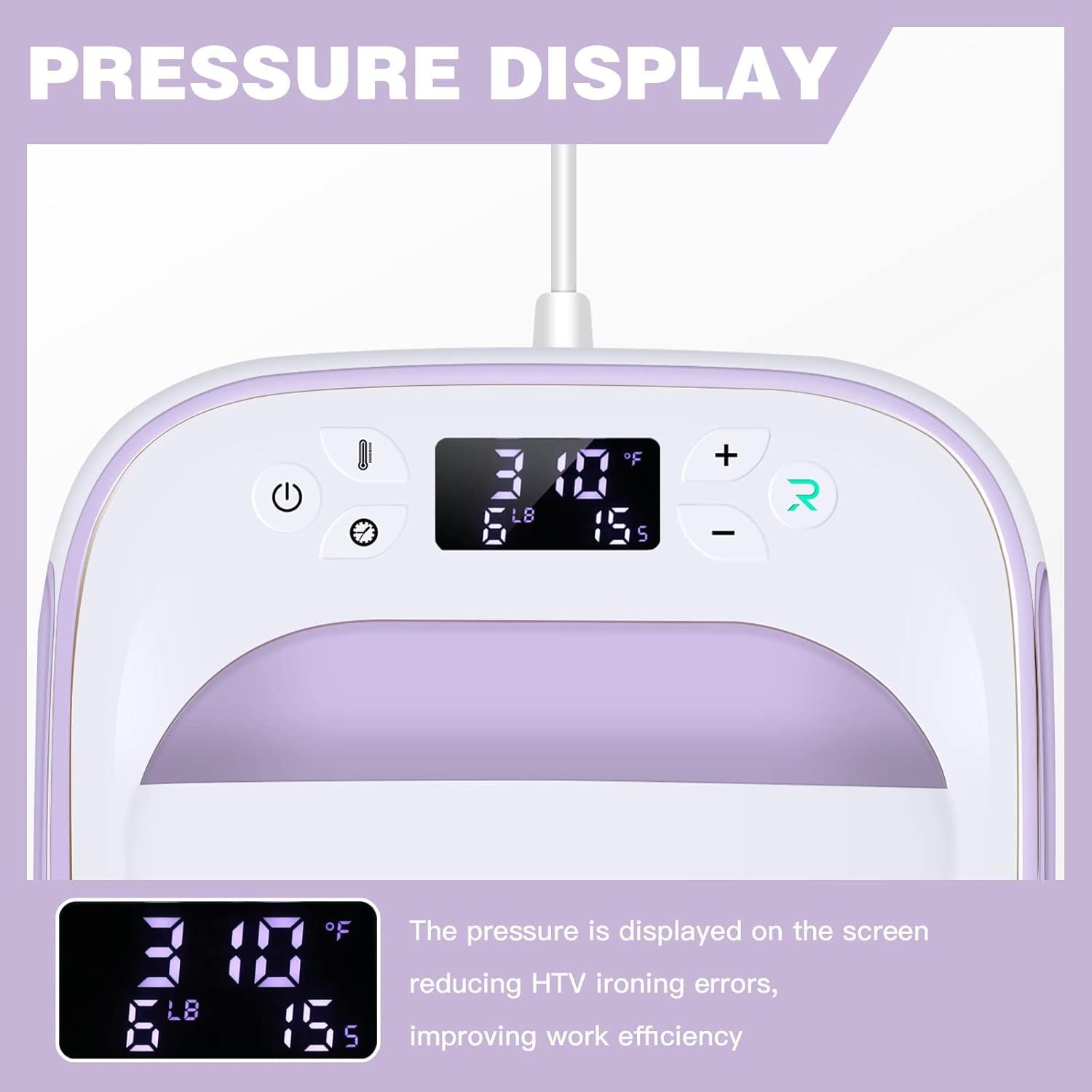 【Large Size & Unique Pressure Display】- The 10″*10″ heating surface is much larger than other mini heat press, so you can easily finish full t-shirt designs with one heating. Besides, the temperature and time settings can accommodate a wide variety of materials and heat settings. Furthermore this hat heat press has a unique pressure display, helping you to apply precise pressure and making HTV work so incredibly easy and pro