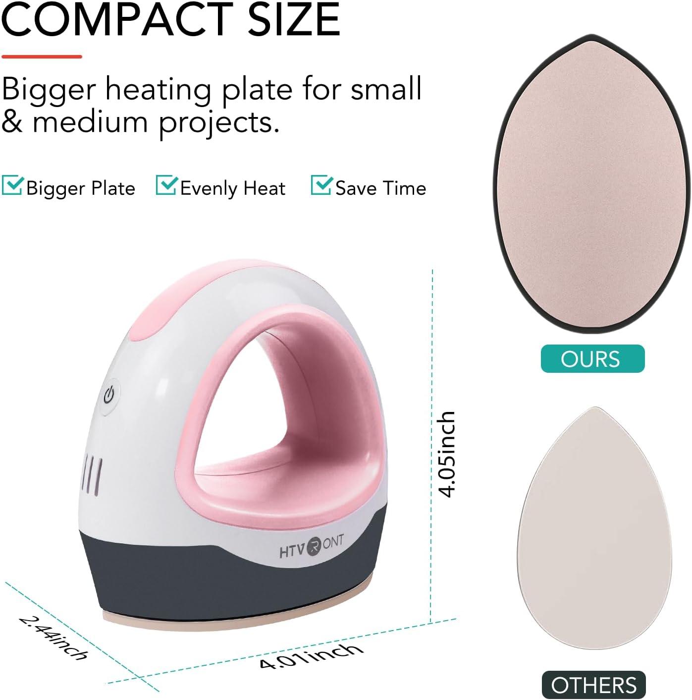 【Mini Size for All Projects】HTVRONT heat press machine is perfect for all heat transfer projects, which has the bigger heating plate 2.44'' x4.01'' than others. Larger sizes will heat more evenly and can save your time. It's suitable for personalized patterns on the surface of T- shirts printing, clothing, hats, handbags, masks, socks, etc. Enjoy the fun of making crafts using the heat press. It's a good choice for birthday and Christmas and anniversaries gift to your family or lover