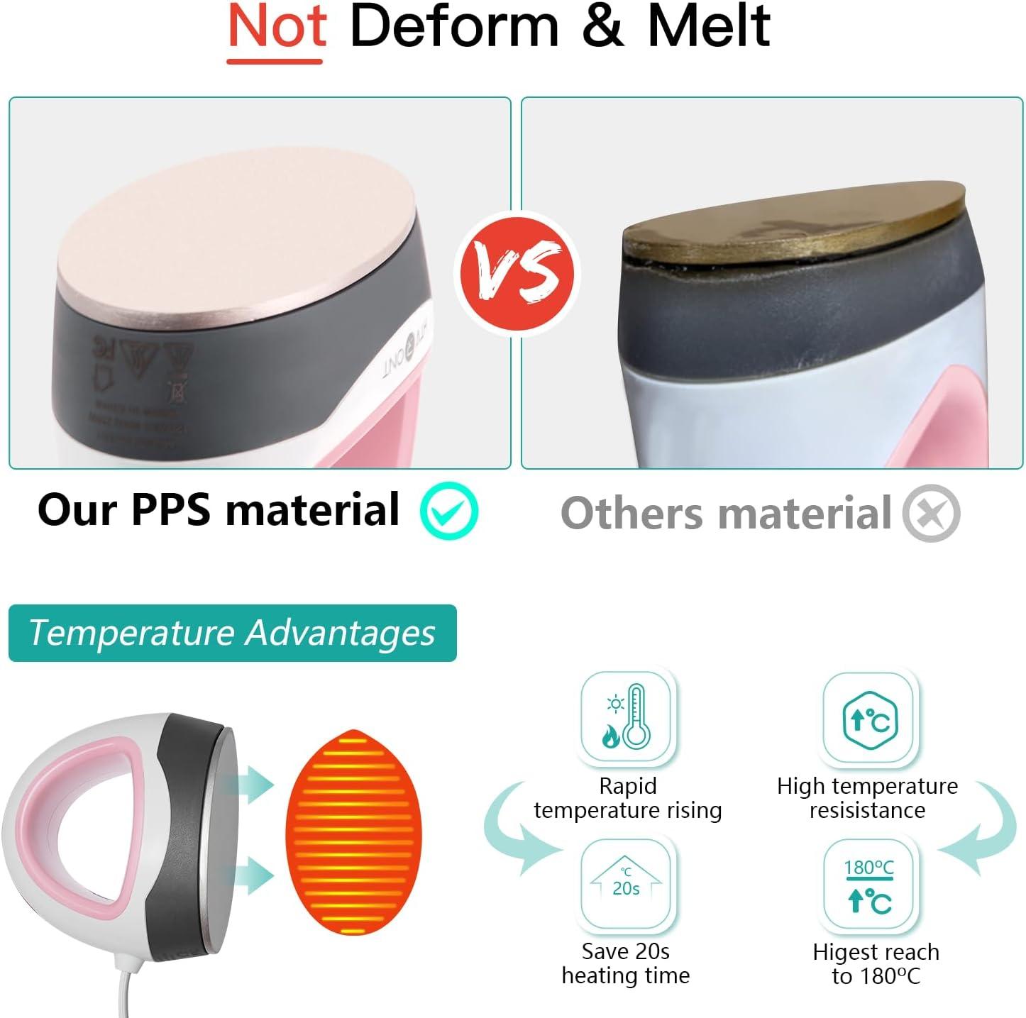 【FAST HEATING UP & DURABLE】 Using our small heat press will save you nearly 20 seconds of heat-up time compared with other brands. At the same time, Our heat press machine adopts durable and high-temperature resistant materials, and the maximum temperature can reach to 356°F (180°C). The soleplate is durable and high temperature resistant without deform & melt