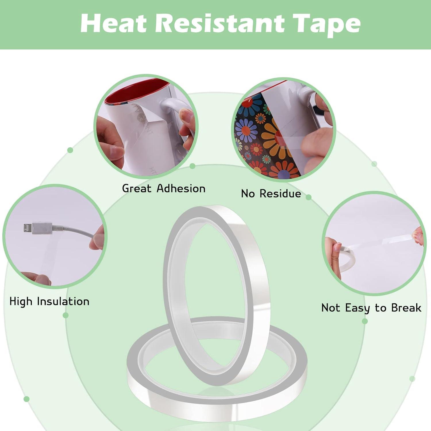 【High-Temperature Resistant Tape】:Used our heat tape with your mug press, heat press vinyl project and sublimation without worrying that it will melt. Heat resistant tape is a polyester film tape with a high-temperature resistant adhesive. Our heat tape for sublimation is compatible with high temperature up to 300℃(572℉). The heat transfer tape work well in protecting product surface in painting, soldering, ironing etc
