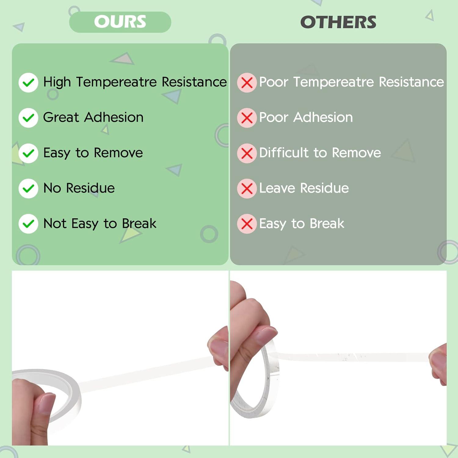 【PEEL OFF EASILY & NO RESIDUE】:Our heat transfer tape is easy to stick and peel off, which offers excellent resistance to no residue after peeling off. Even uneven surfaces can be easily wrapped with heat resistant tape and don't have to clean the glue off your belongings after using heat tape. So you can easily and conveniently use HTVRONT high temp tape