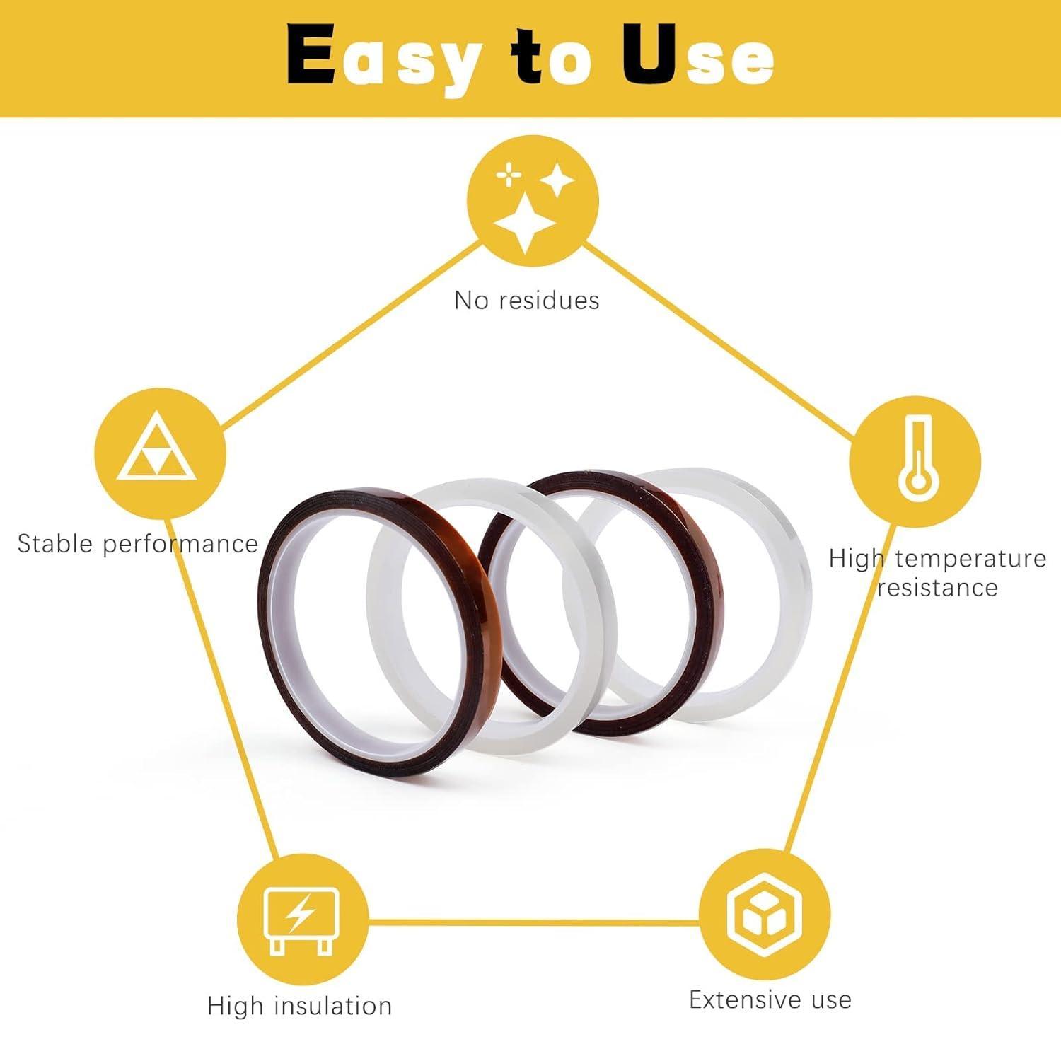 【EXCELLENT ADHESION & HIGH INSULATION】:Unlike other heat tape for sublimation with odour and cracking, our heat press tape is pretty sticky, the strong silicone adhesive will hold on tightly to any surface. Our high resistant tape are also high insulation, acid and alkali-resistance, low electrolysis, mechanically sound, crocking resistance. The heat tape can well protect various electronic and electrical products, motors, solders, printed circuit boards, Packing fixation, etc