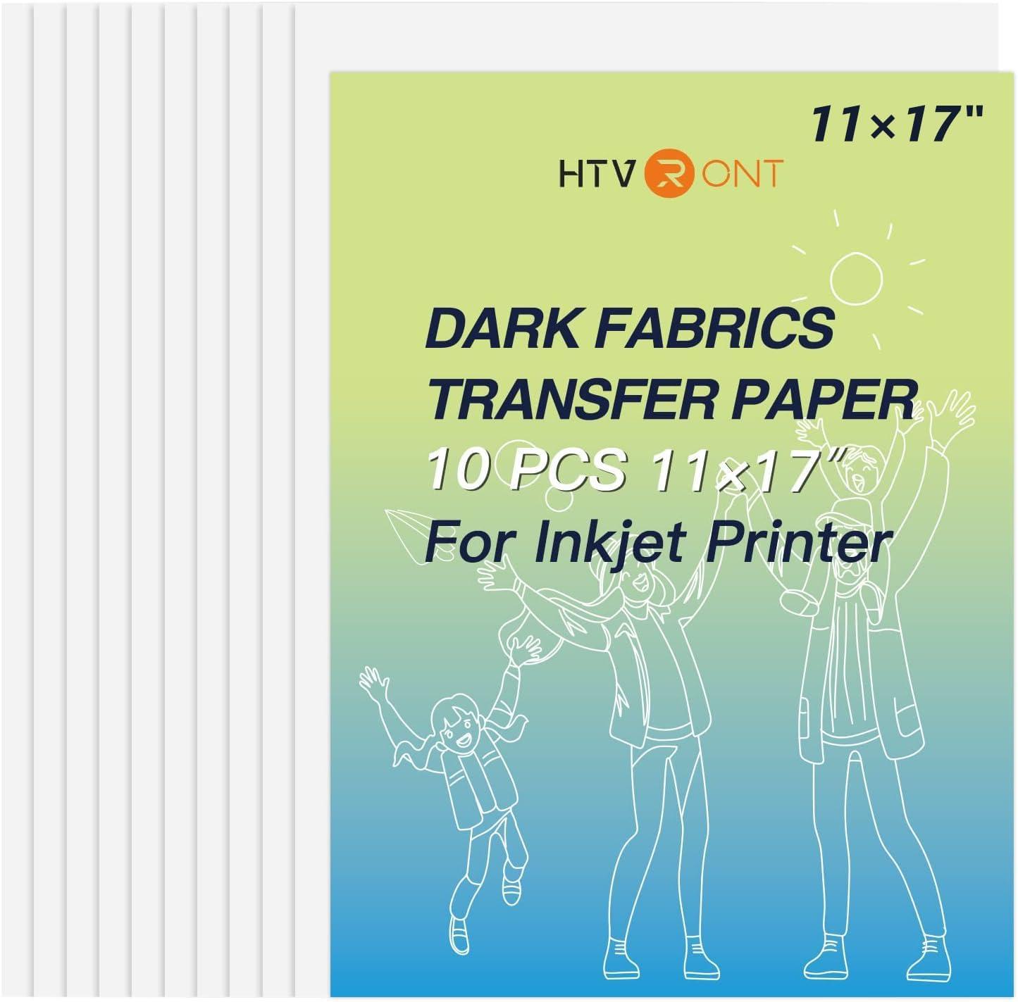 HTVRONT Heat Transfer Paper for Dark Fabric – 10 Sheets 8.5″x11″ Printable Heat Transfer Vinyl for Inkjet Printer – Wash Durable Iron on Transfer Paper(For Dark Color)