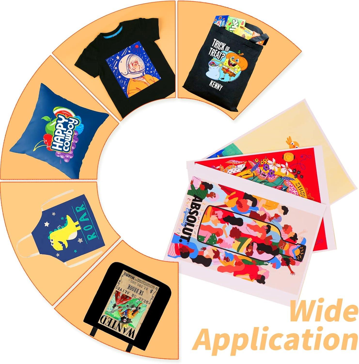 【Wide Application】- This iron-on transfer paper is designed for dark-colored cotton fabrics. With the help of this dark fabric transfer paper, you can easily customize T-shirts, tote bags, pillows, aprons and more. Why not making some lovely gifts to your families or friends with our tshirt transfer paper?